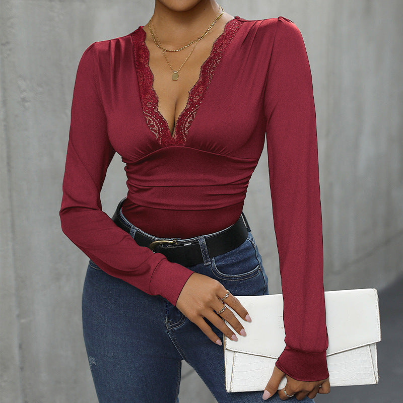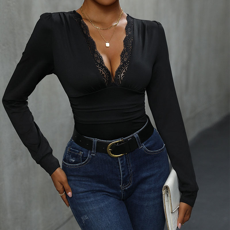 New Spring Women's Slim-Fit Lace Patchwork Elegant Long-Sleeved Jumpsuit