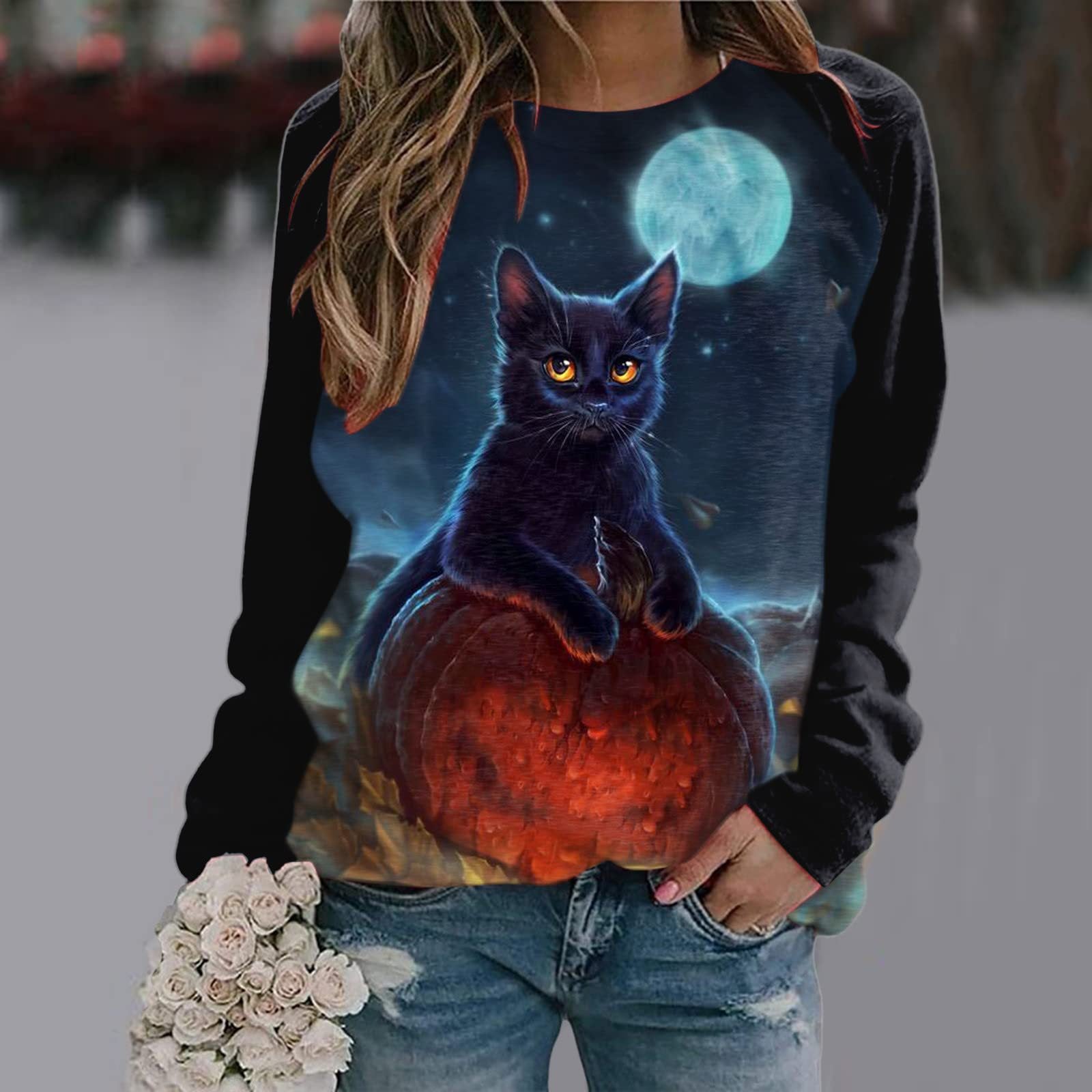 New Women's Halloween Christmas Women's Clothing 3D Three-Dimensional Printed Castle Dark Round Neck Hoodie