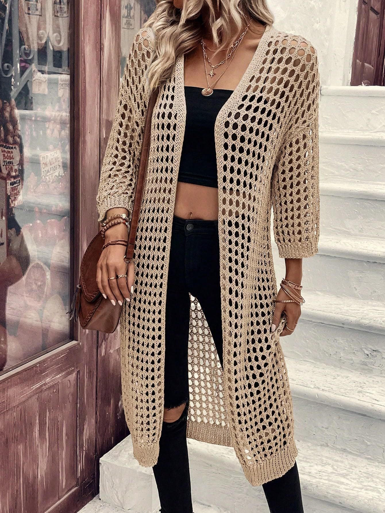 Overseas Sweater Coat Summer New Hollowed-Out Knitted Long Cardigan