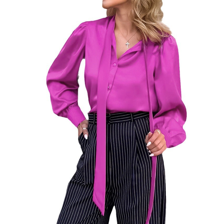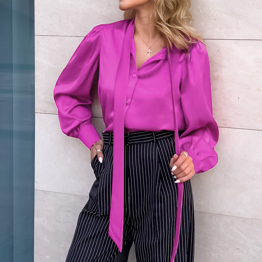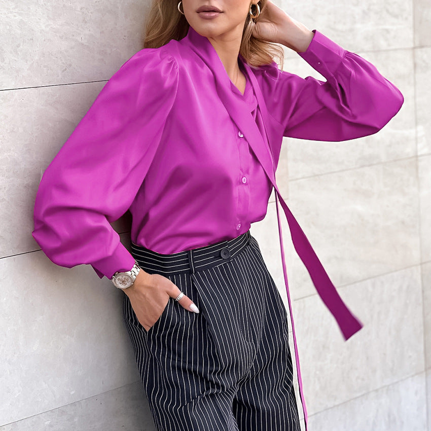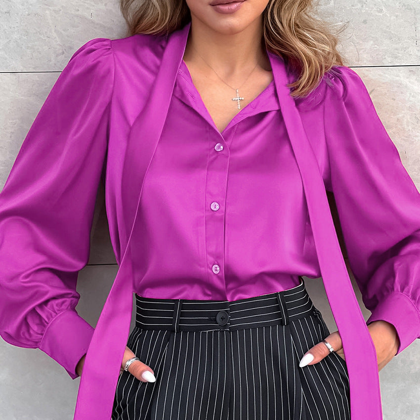 Purple Thin Soft Matte Color Ding Piao Lead Women's Shirt New Fall Fashion Commuter Woman