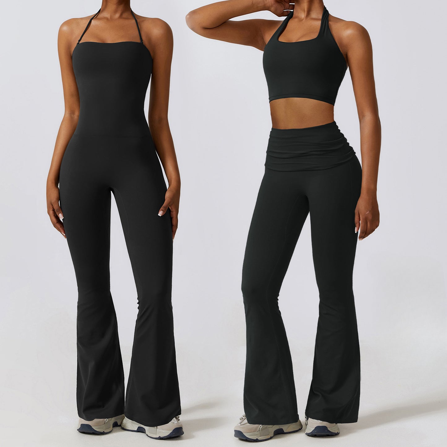 Quick Dry Body-Tight One-Piece Yoga Clothes Naked Casual Sports Fitness Clothes Dance High Waist Micro Flare Pants