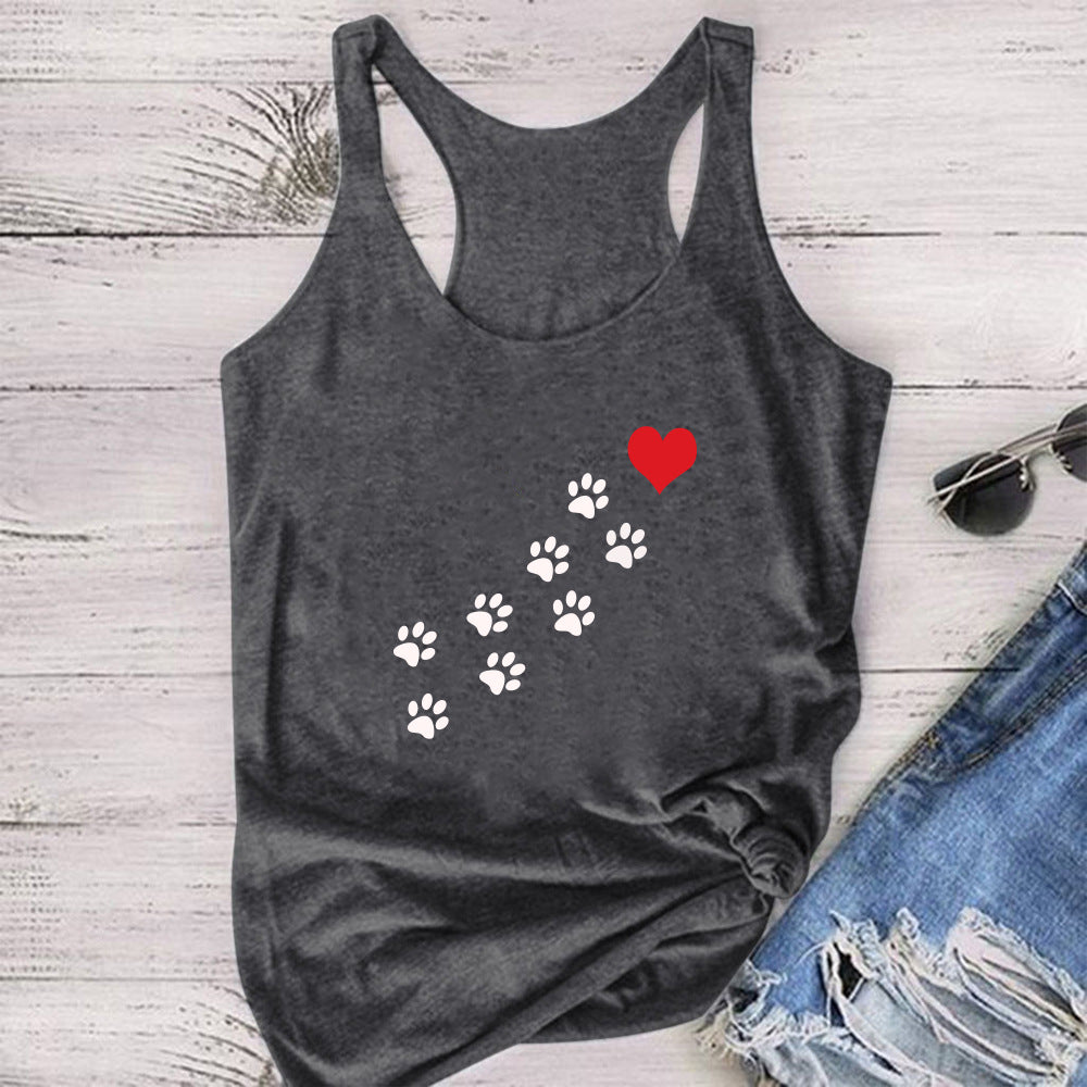 Red Heart Bear Paw Paw Print Animal Cute I-Shaped Vest Summer New Style Top