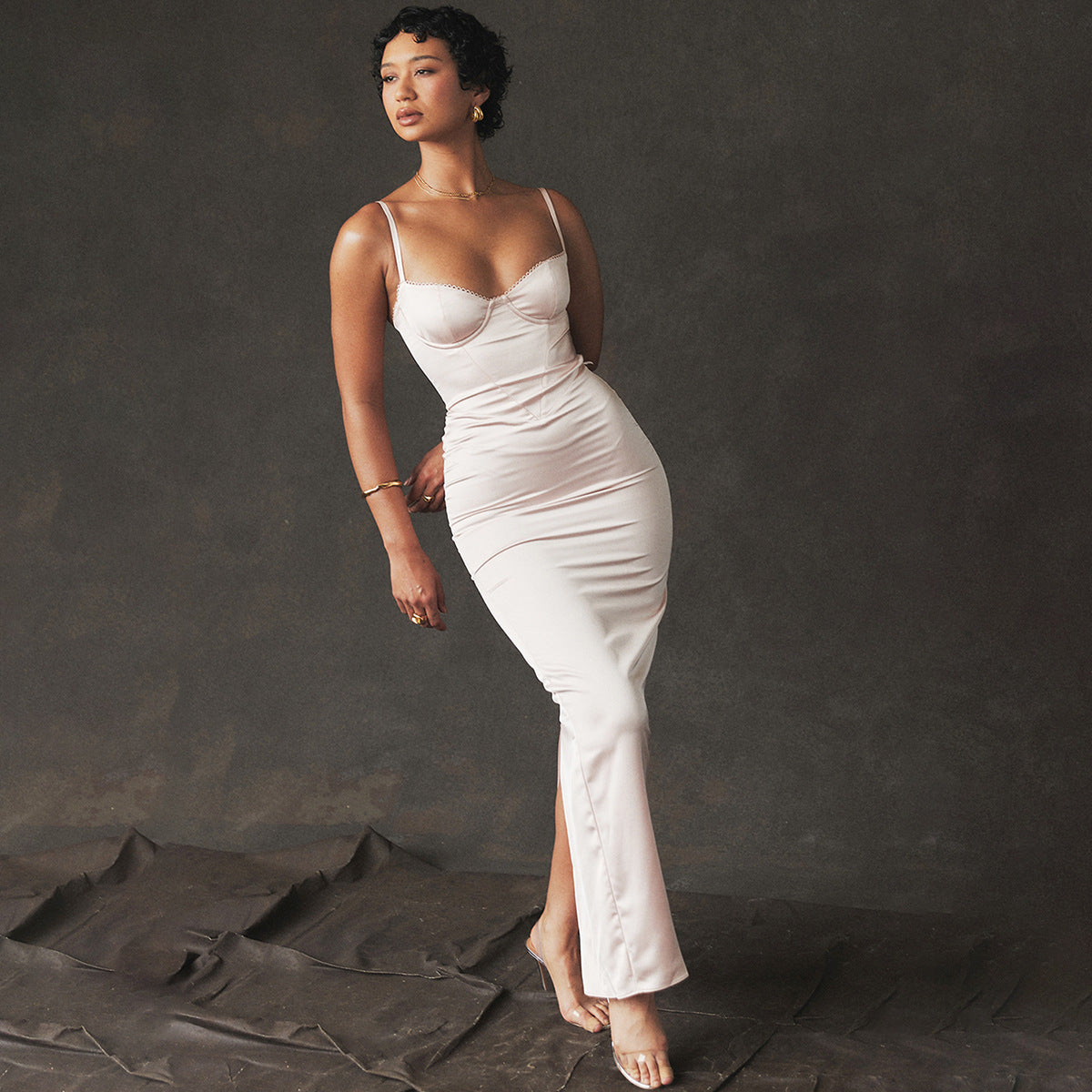 Sexy High-End Women's Color Halter Long Dress Slim Slit Elegant Evening Dress Sweet And Spicy Style Dress