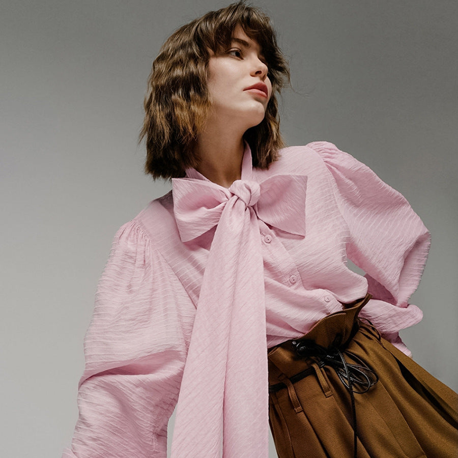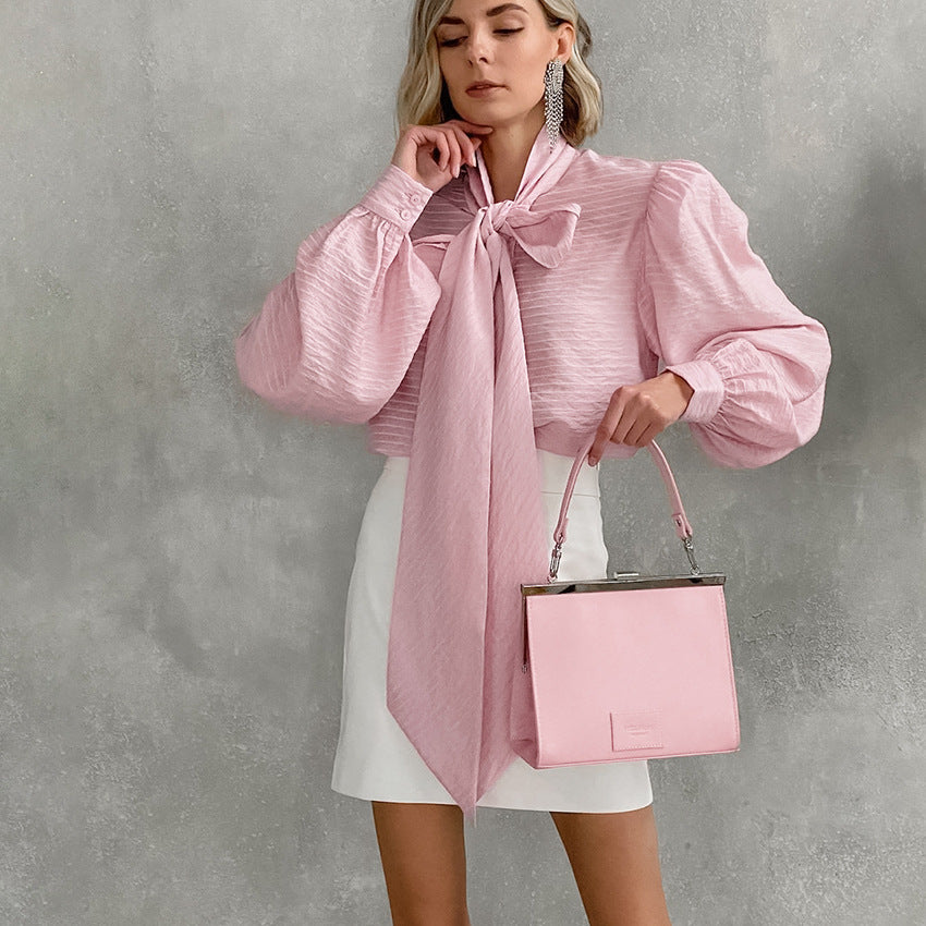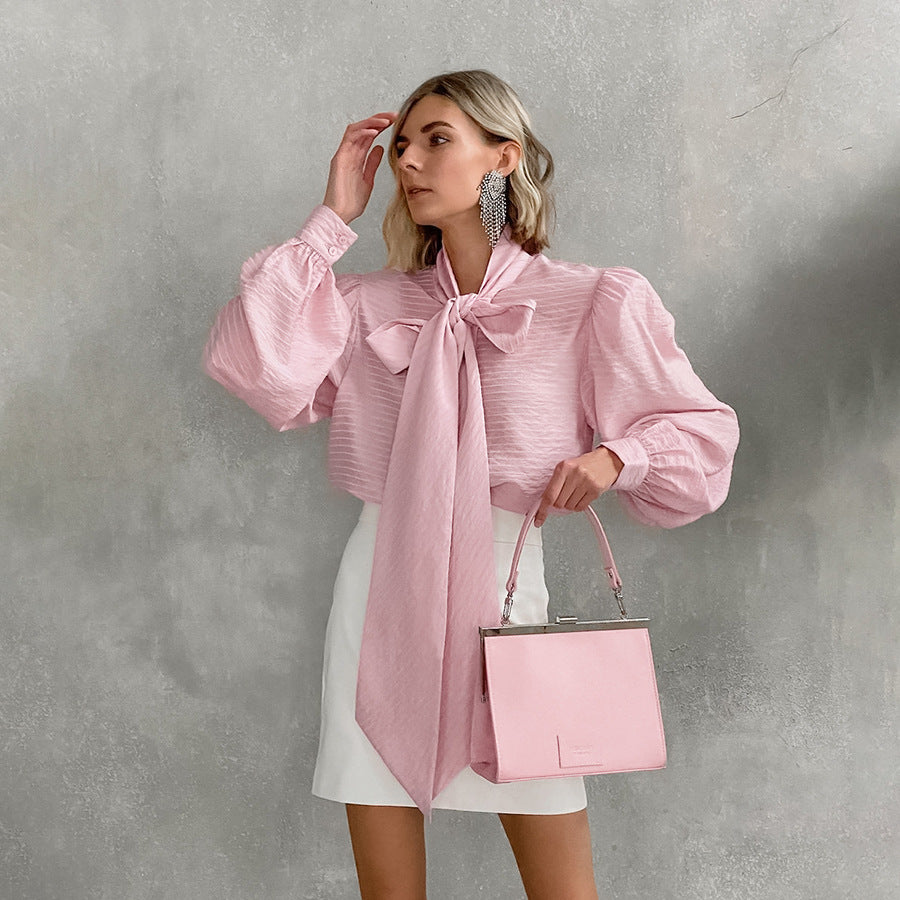 Sexy Light Luxury Jacquard Float With Puffy Sleeve Shirt Autumn Loose Minority Temperament Feeling Shirt For Women