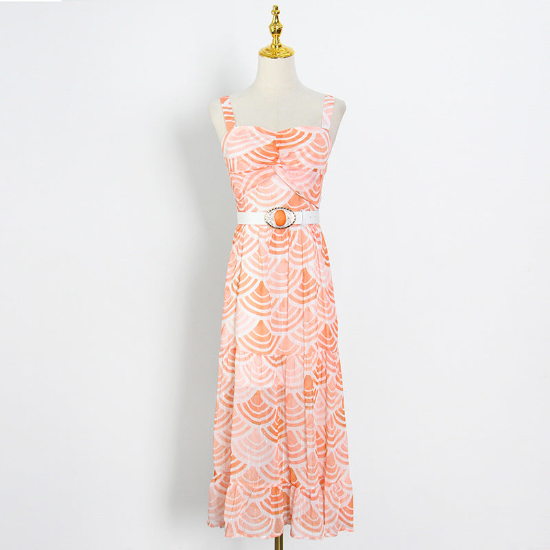 Sexy Slip Dress Women's New Fashion High Waist Belt Commuter Women Long Skirt
