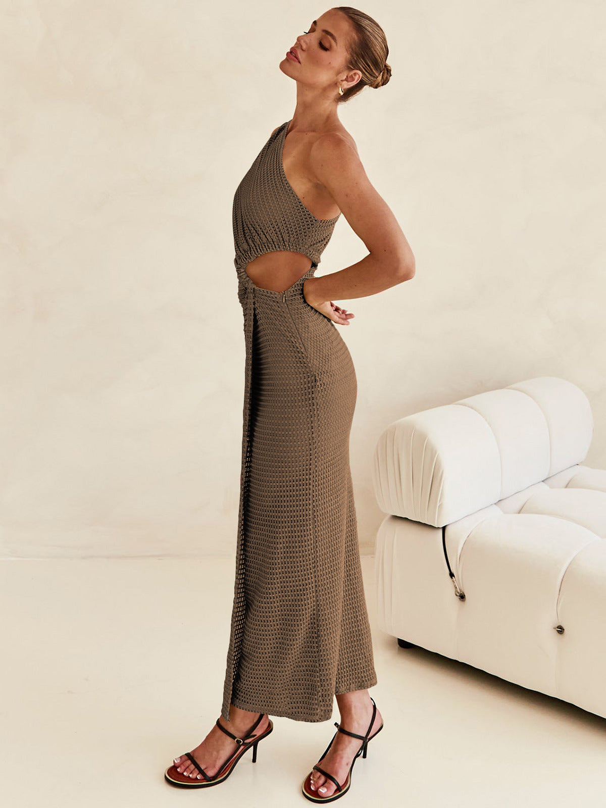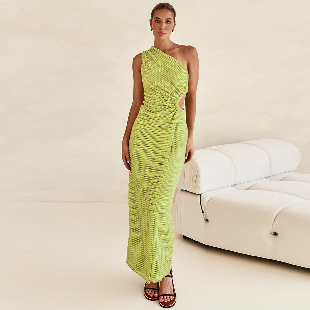 Single Shoulder Hollow Knit Long Dress Senior Sense Women Sexy Bag Hip Skirt Slim Dress