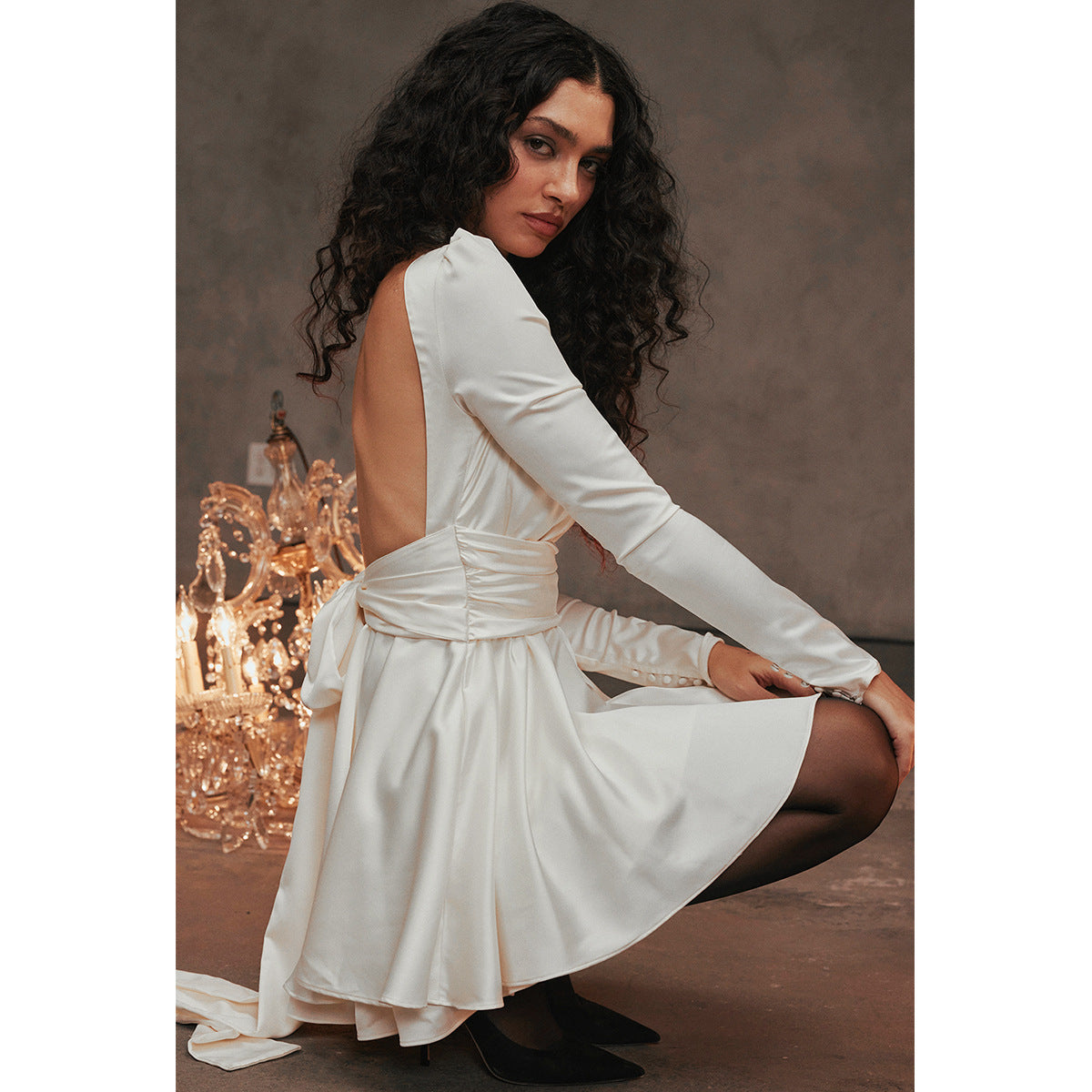 Spice Dress Sexy Hollow Long Sleeve Halter Dress Bow White Skirt Pure Wind