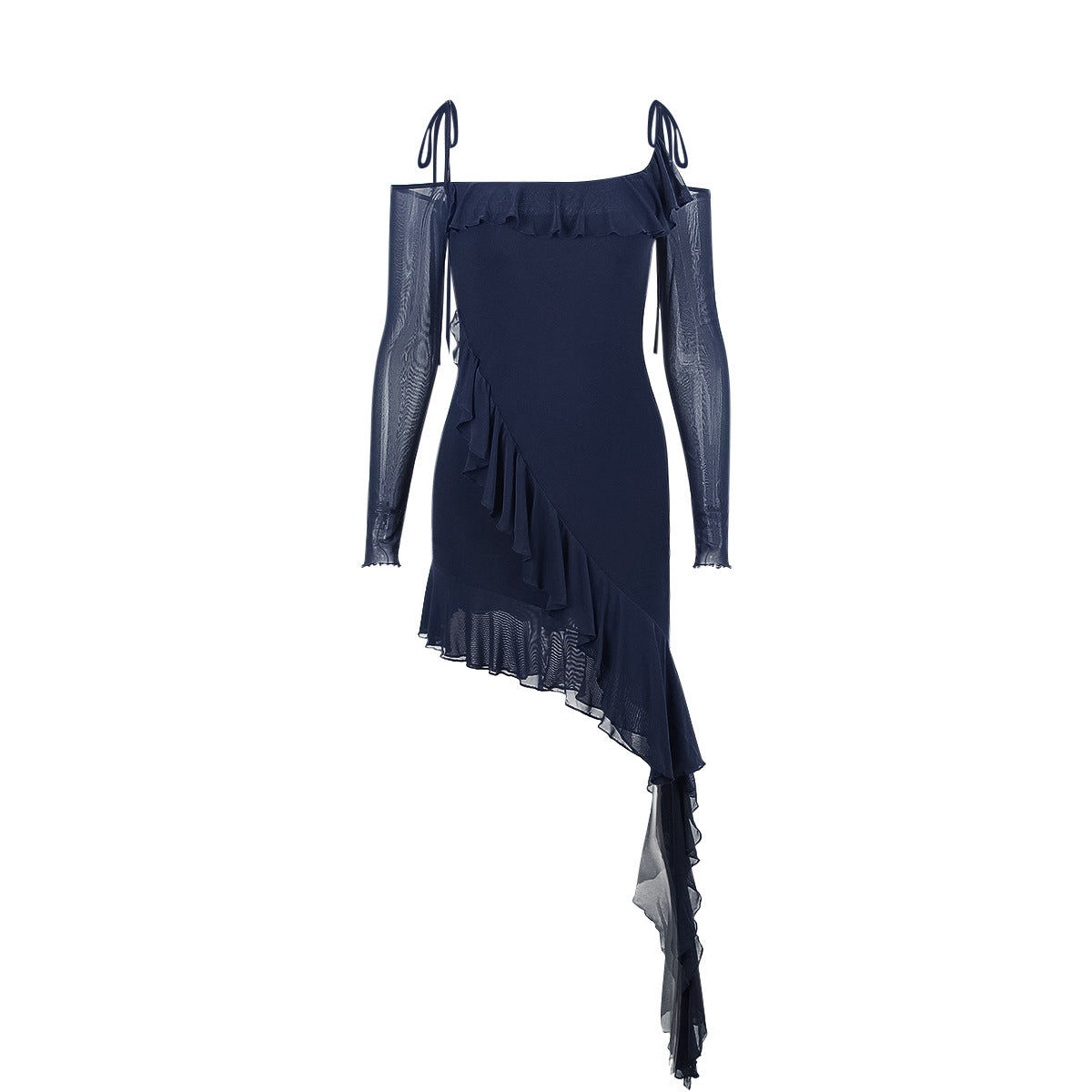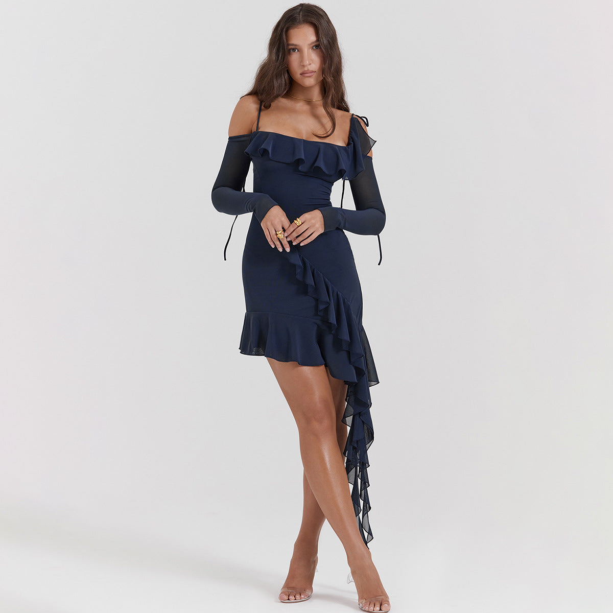 Spice Girls Wear Women's One-Shoulder Long Sleeve Irregular Sexy Dress New Mesh Ruffled Buttock Skirt
