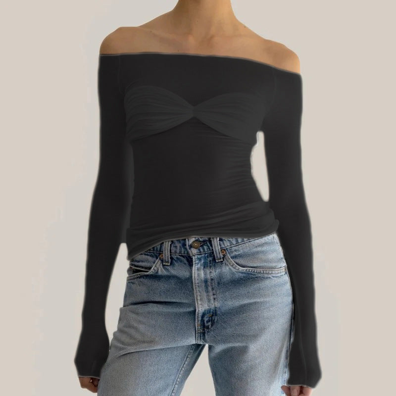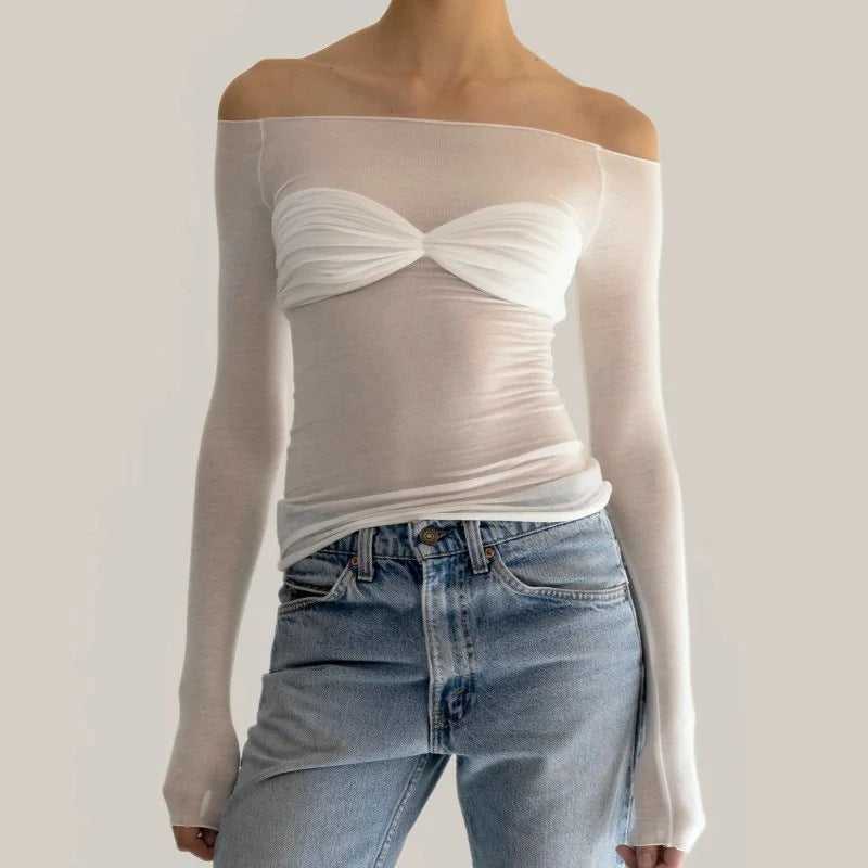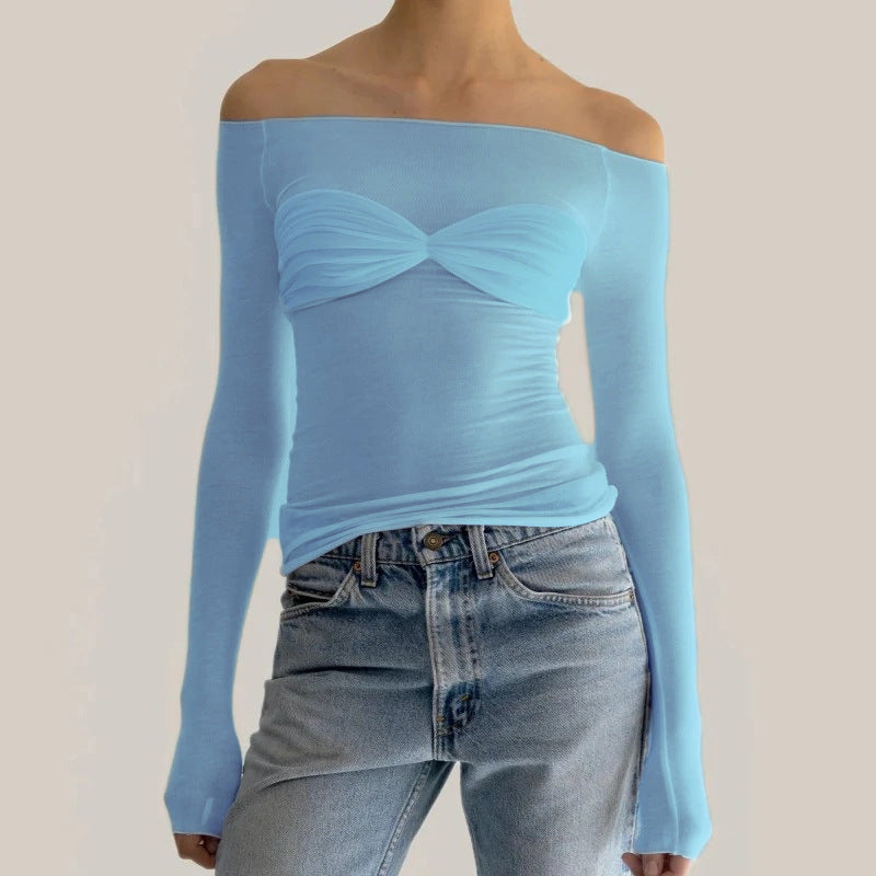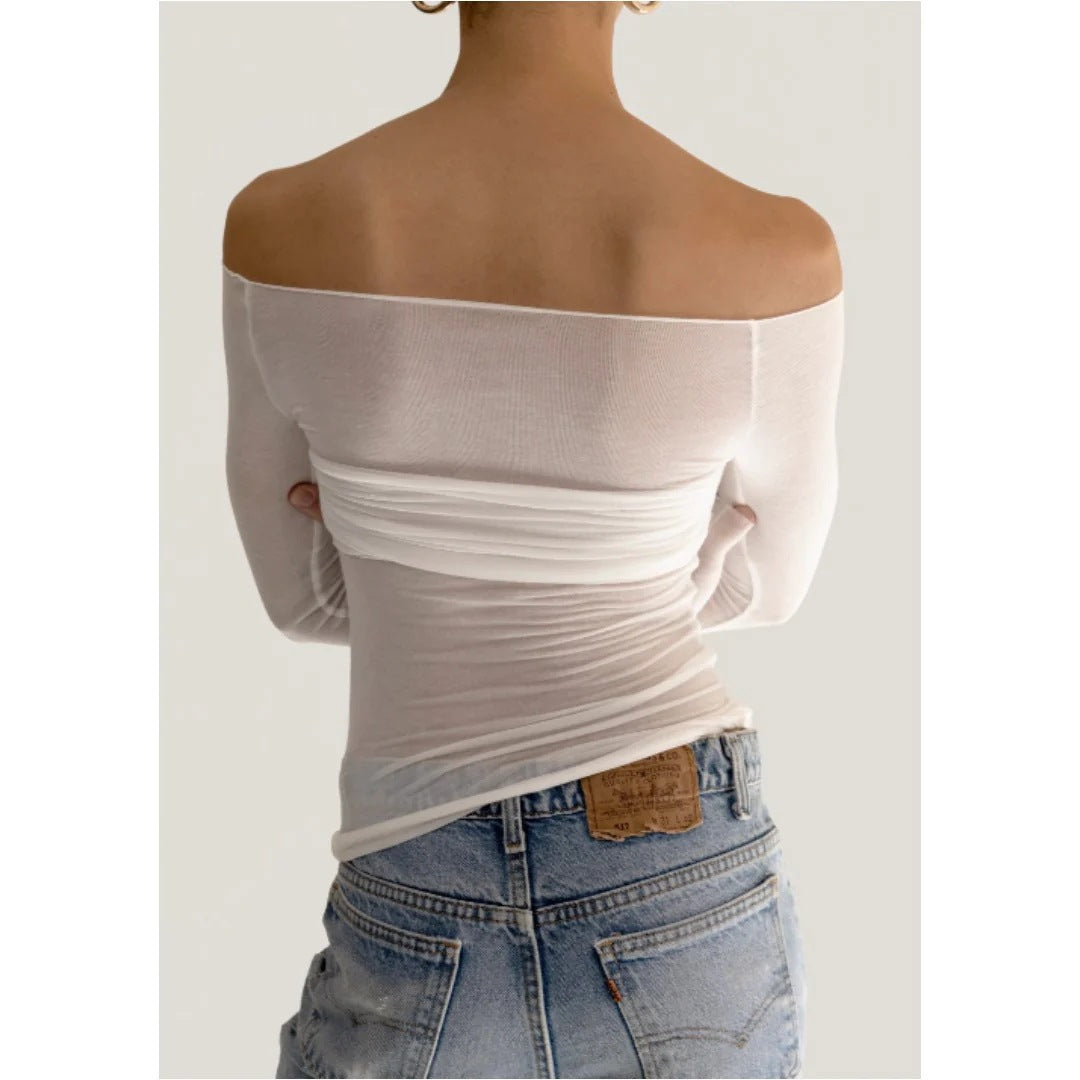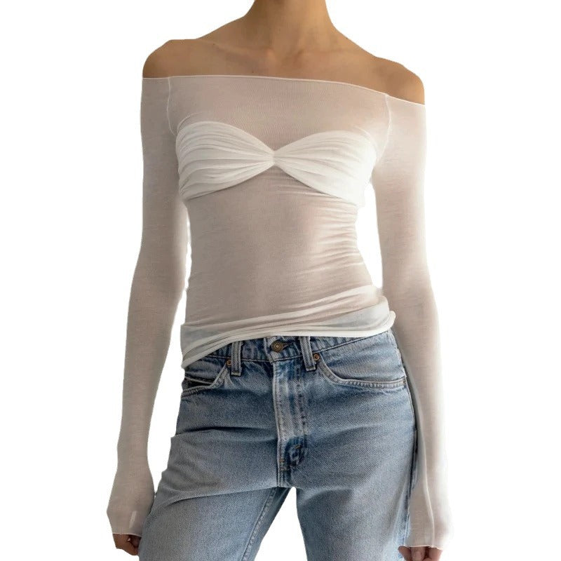 Spring And Summer Women's Light Perspective One Line Collar T-Shirt Top
