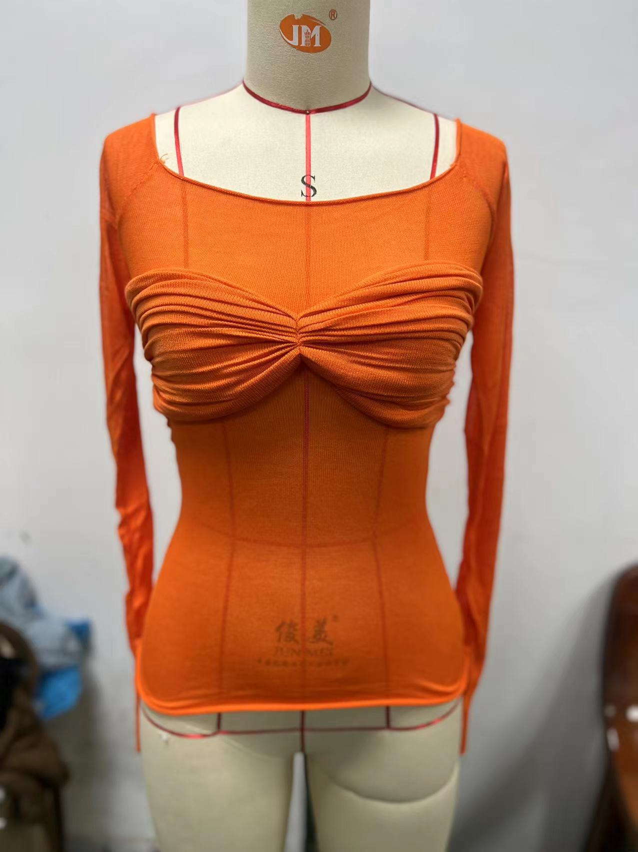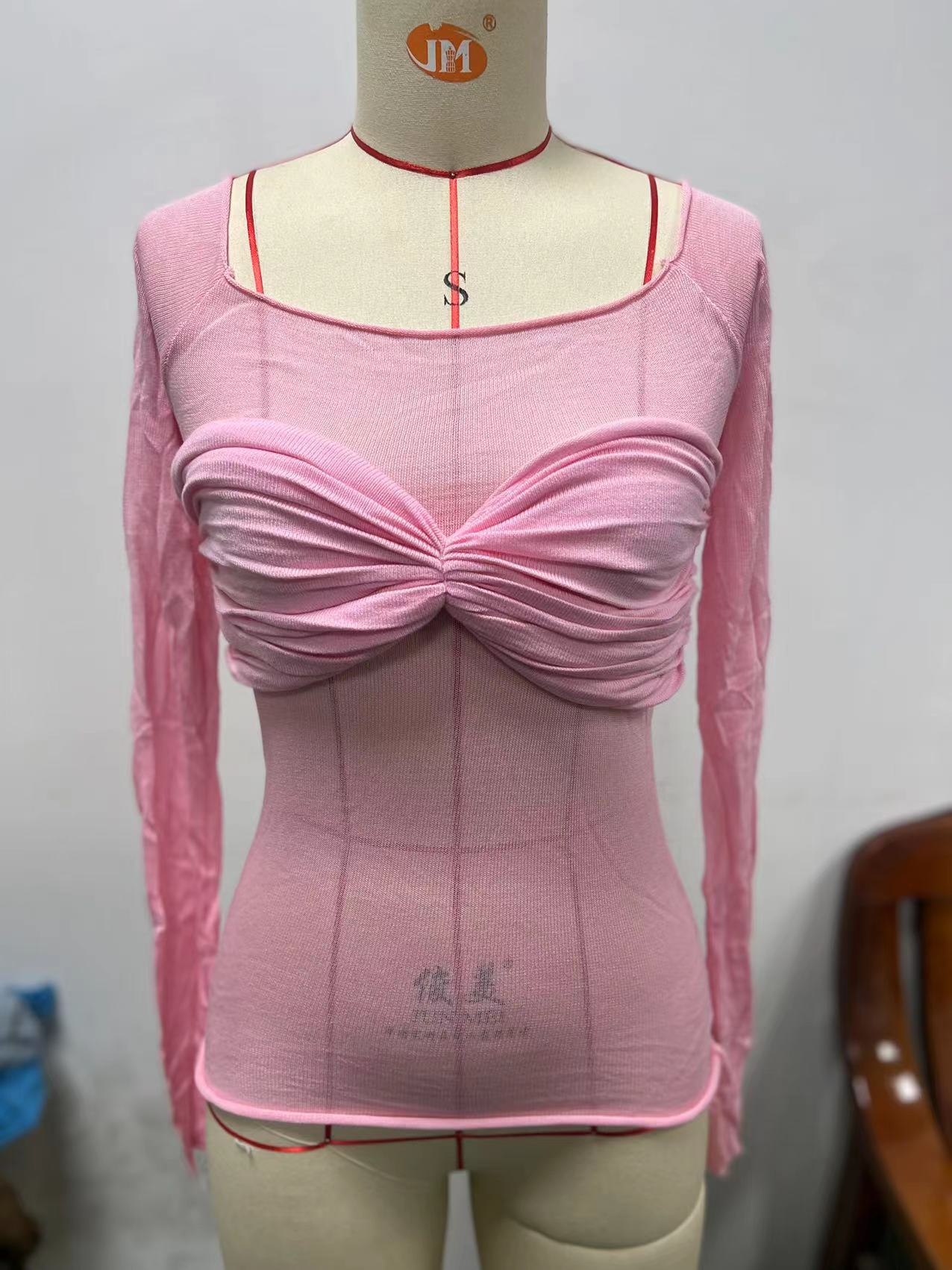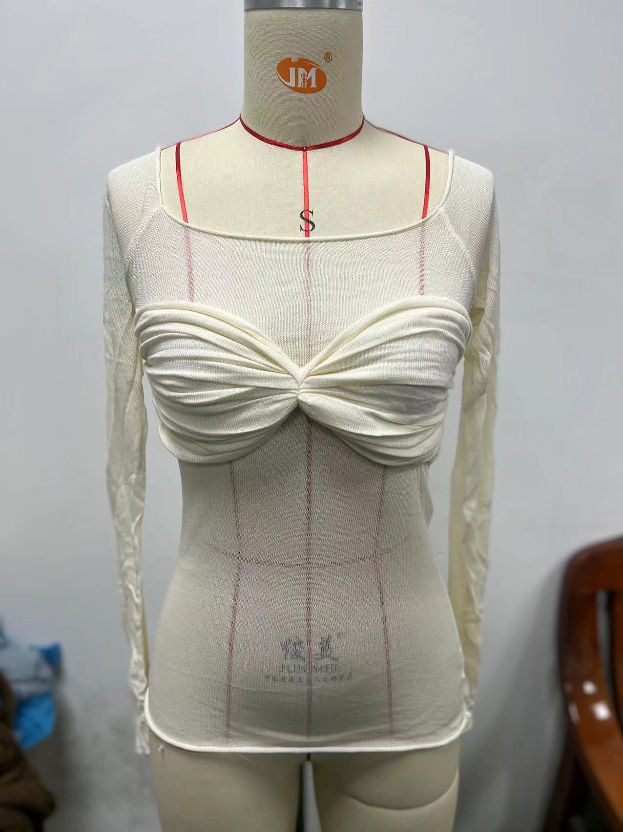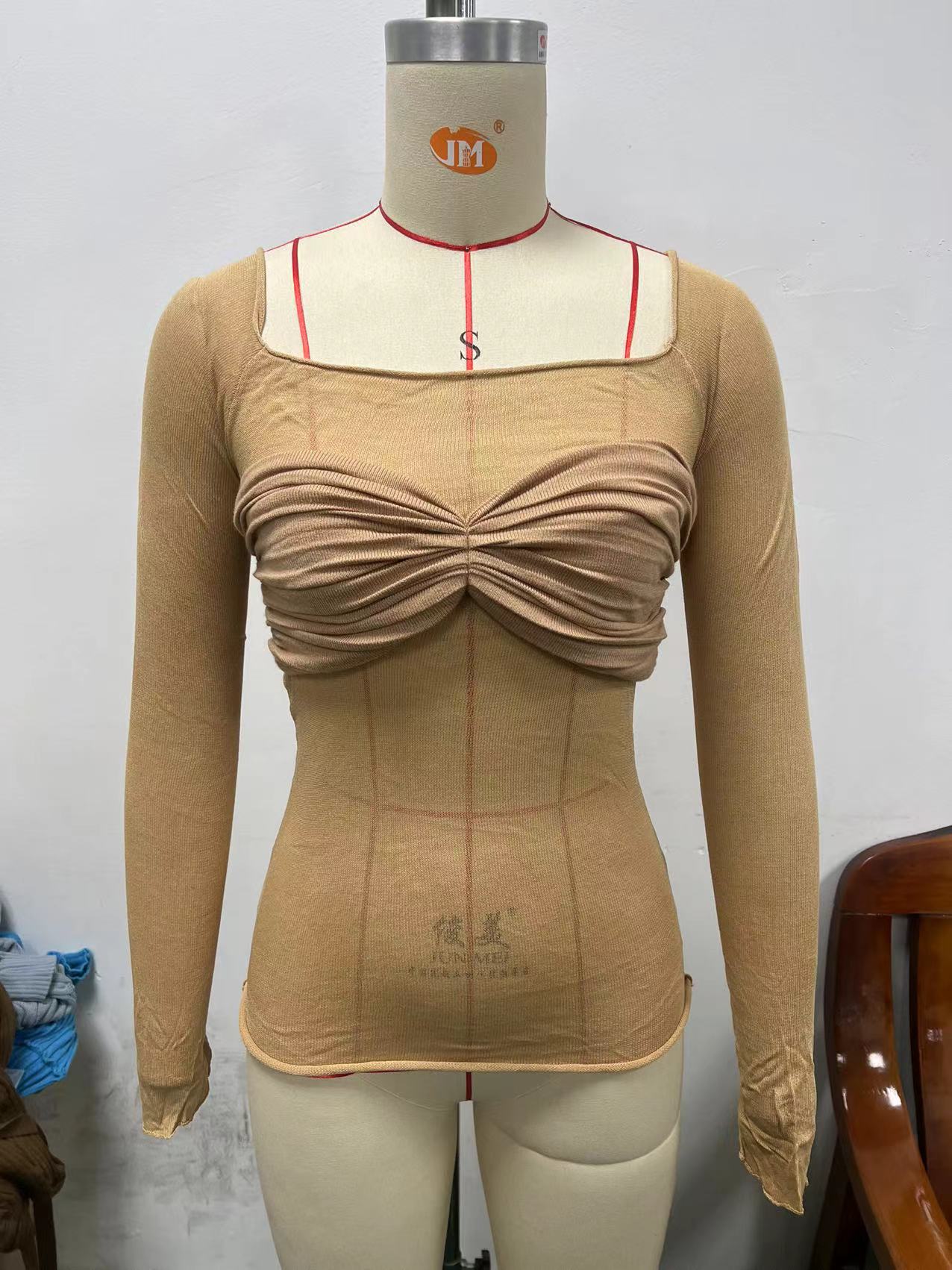 Spring And Summer Women's Light Perspective One Line Collar T-Shirt Top