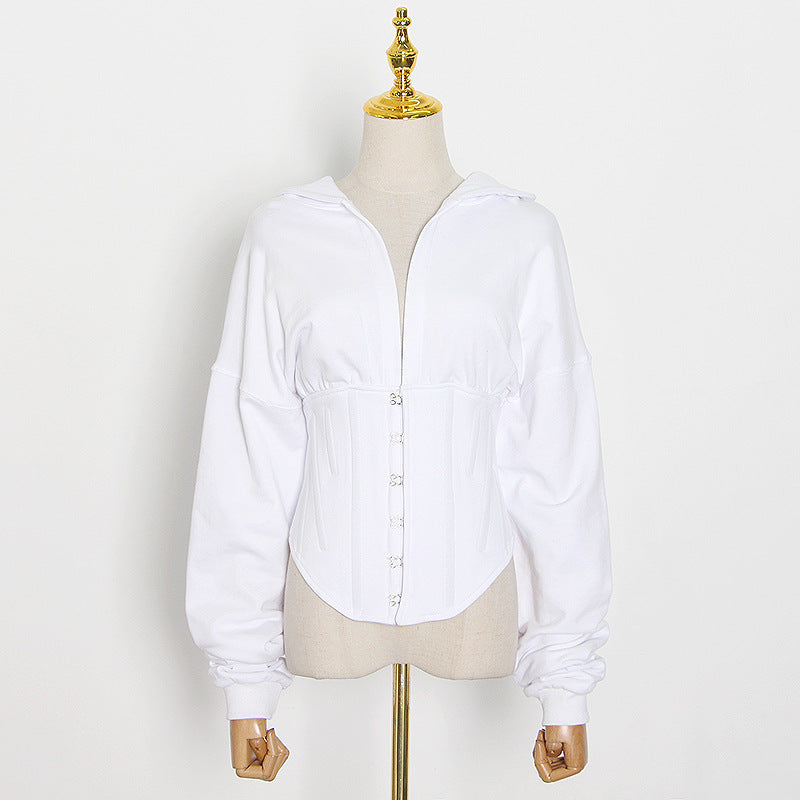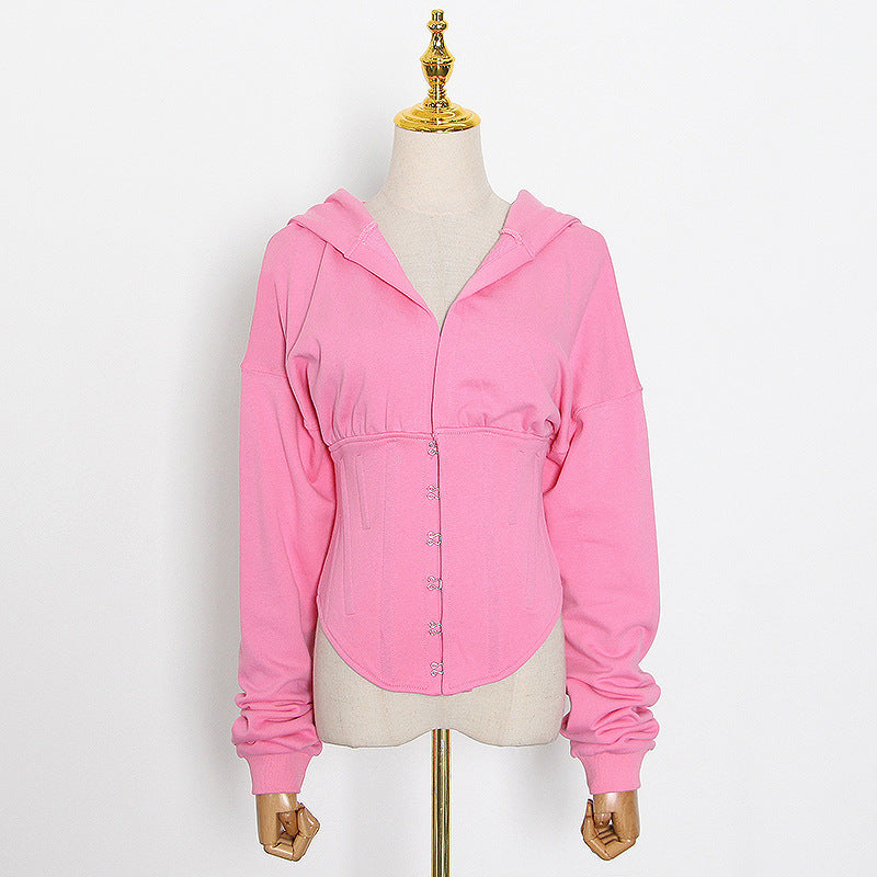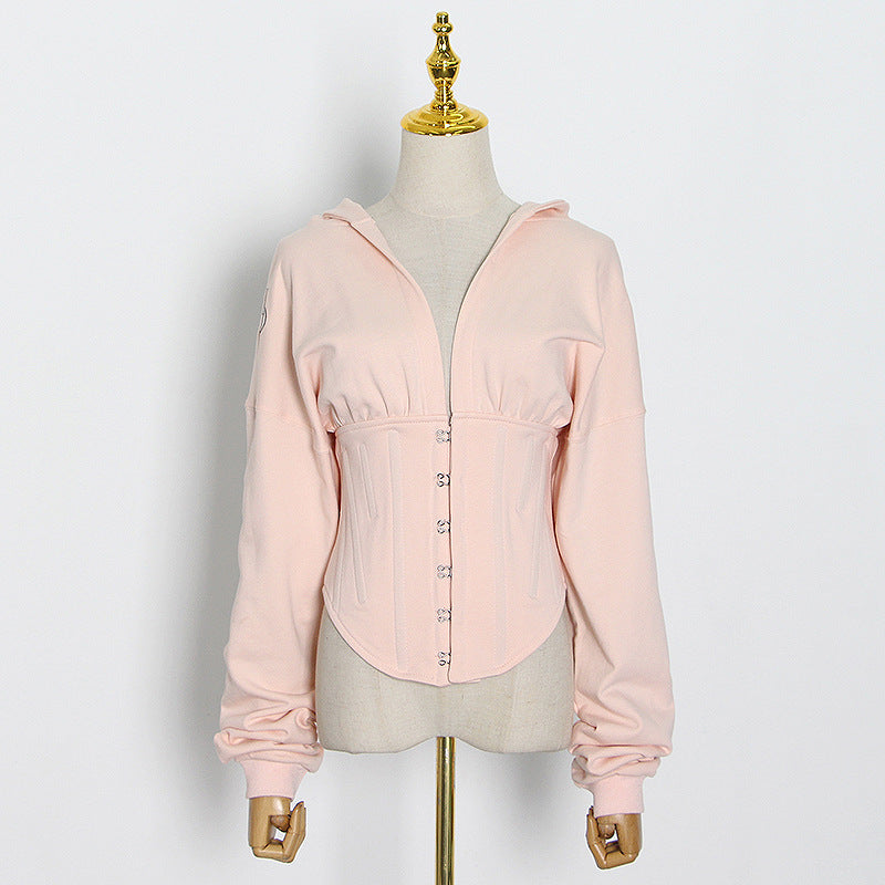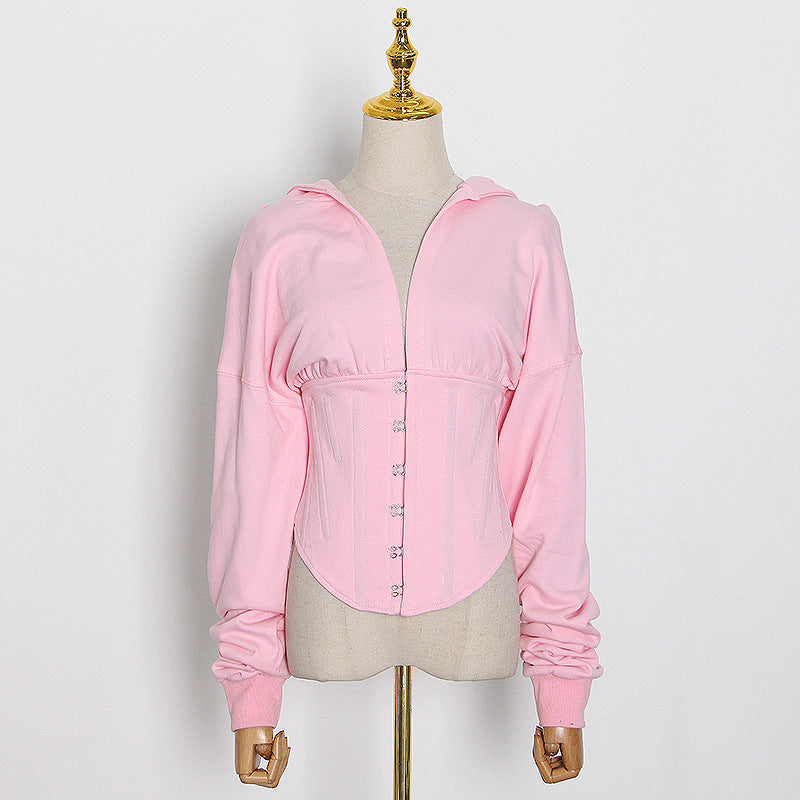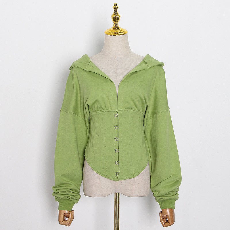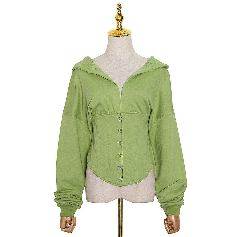 Spring New Small Deep V Tie Hat Waist Strap Behind Multi-Color Hoodie Female Tide
