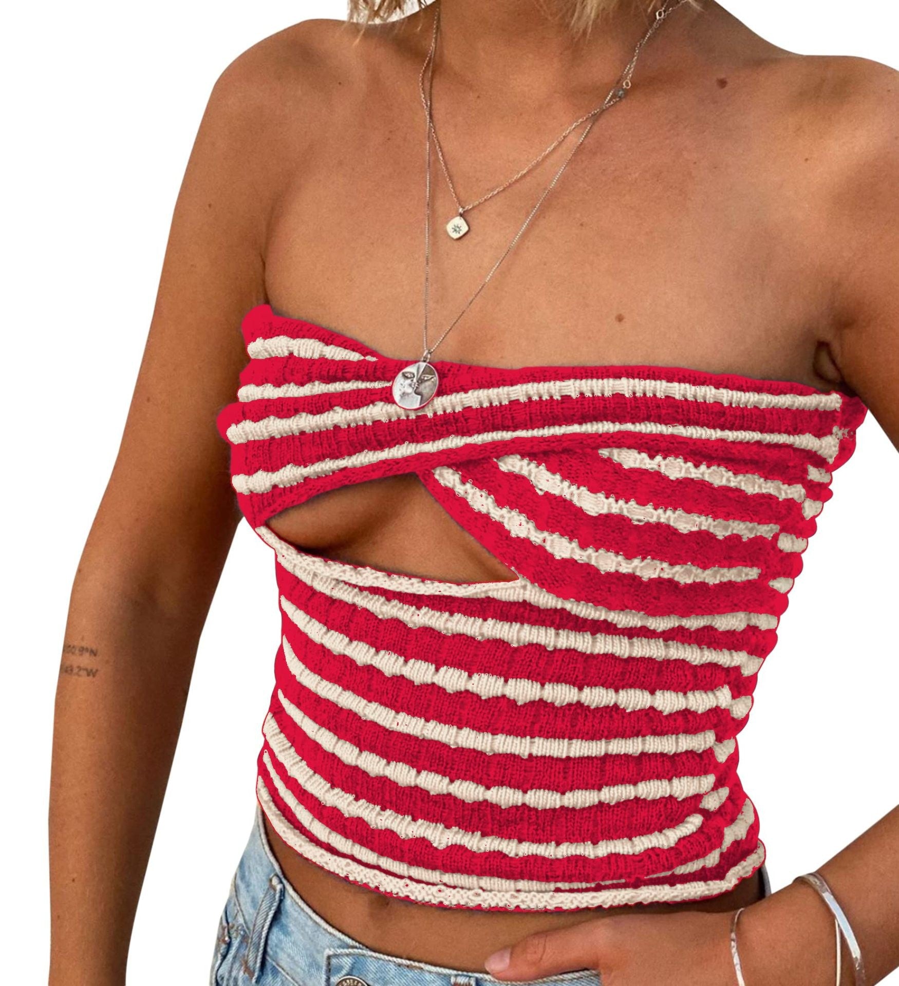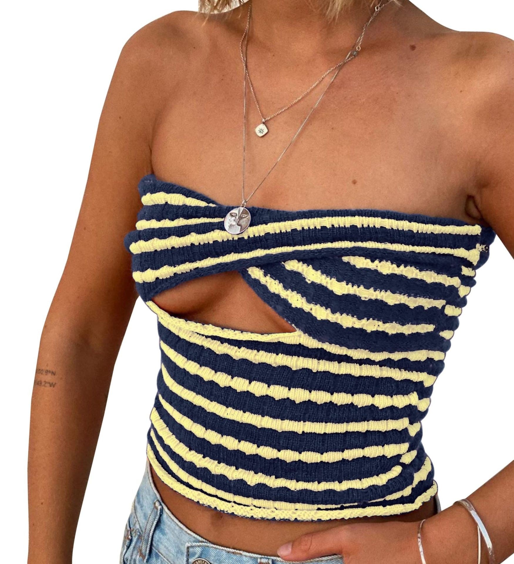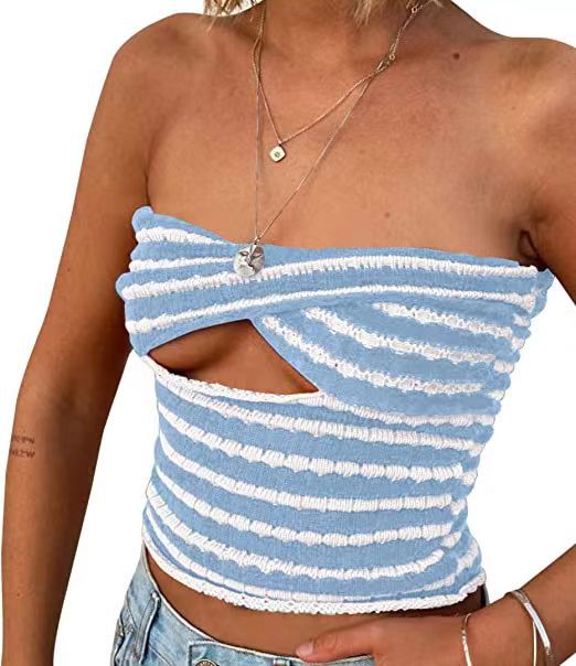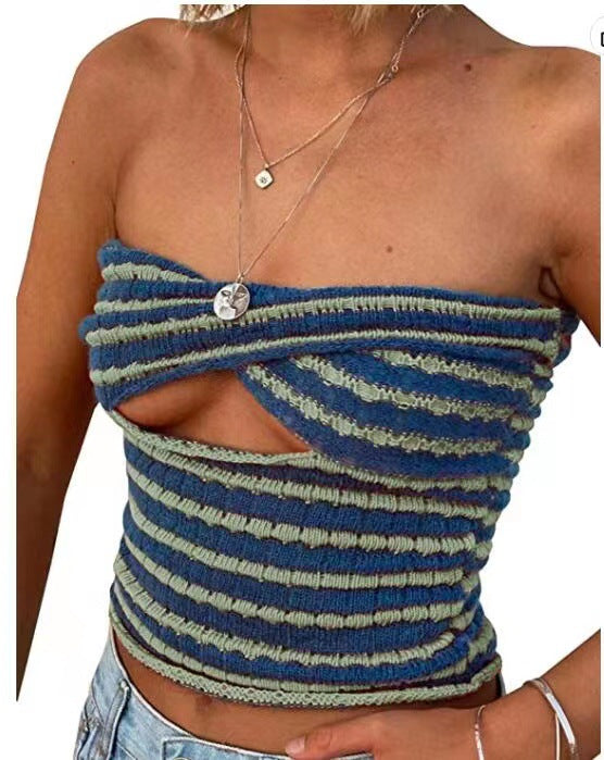 Spring/Summer Sweater Women's Sexy Striped Sweater Knit Halter Top Vest Woman