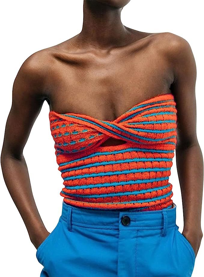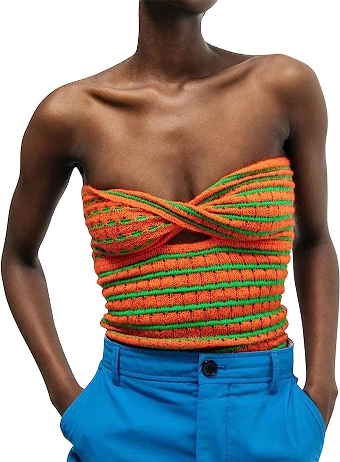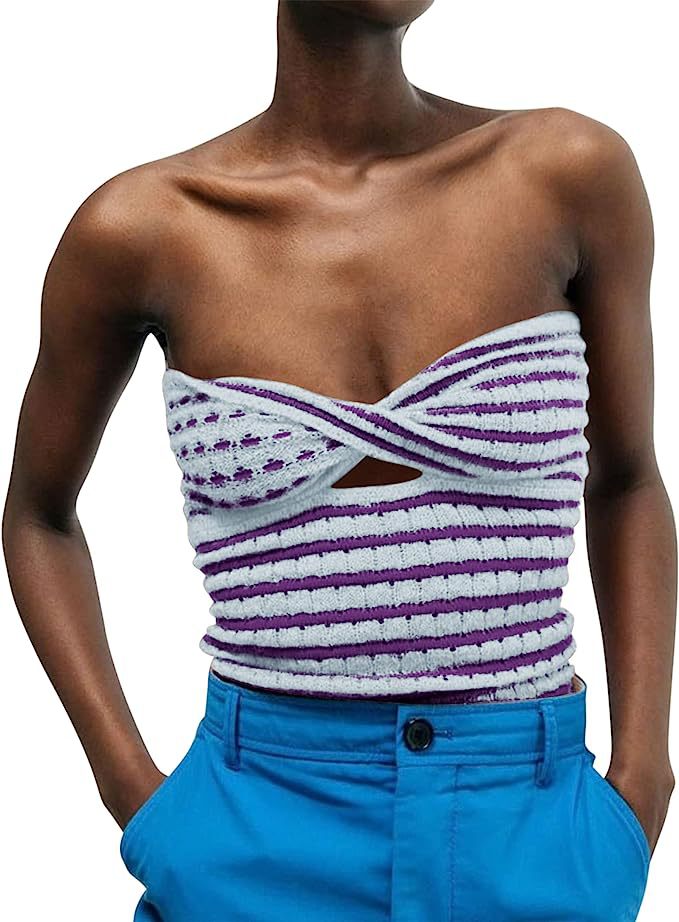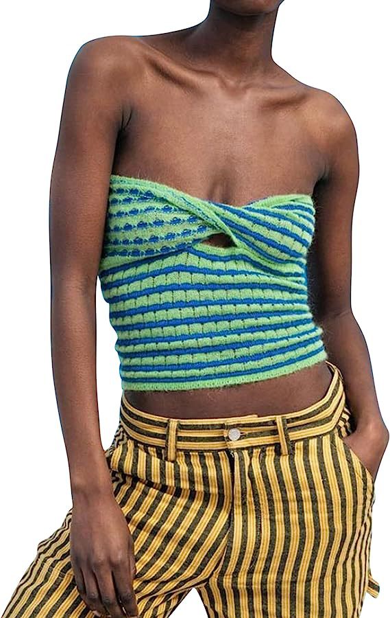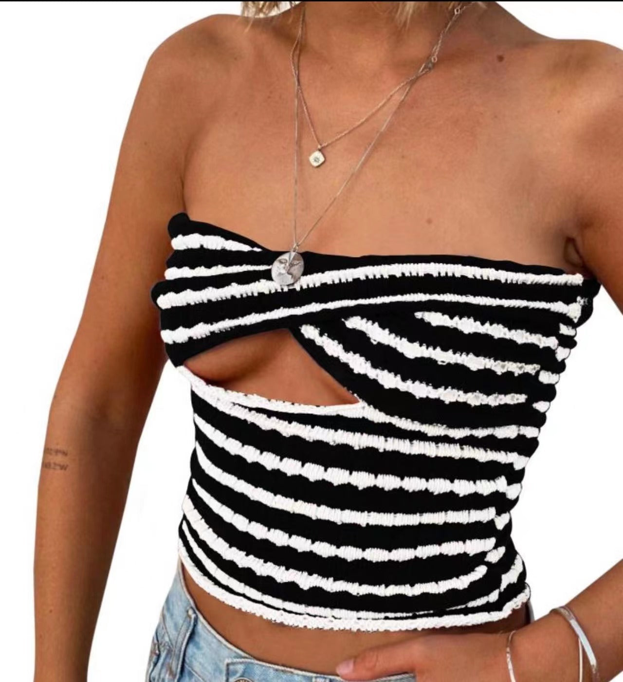 Spring/Summer Sweater Women's Sexy Striped Sweater Knit Halter Top Vest Woman