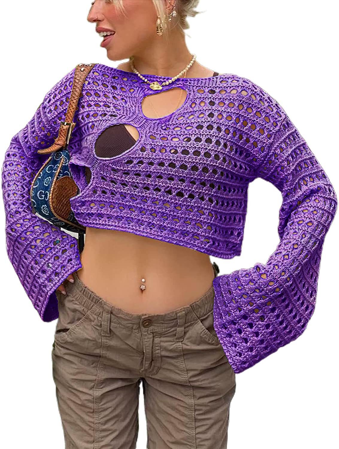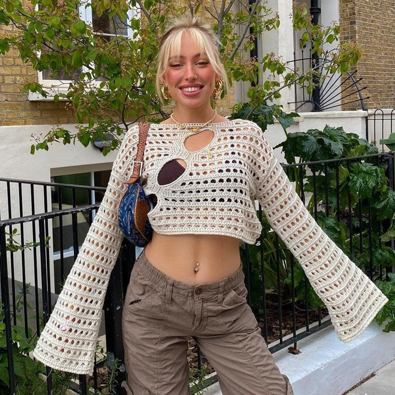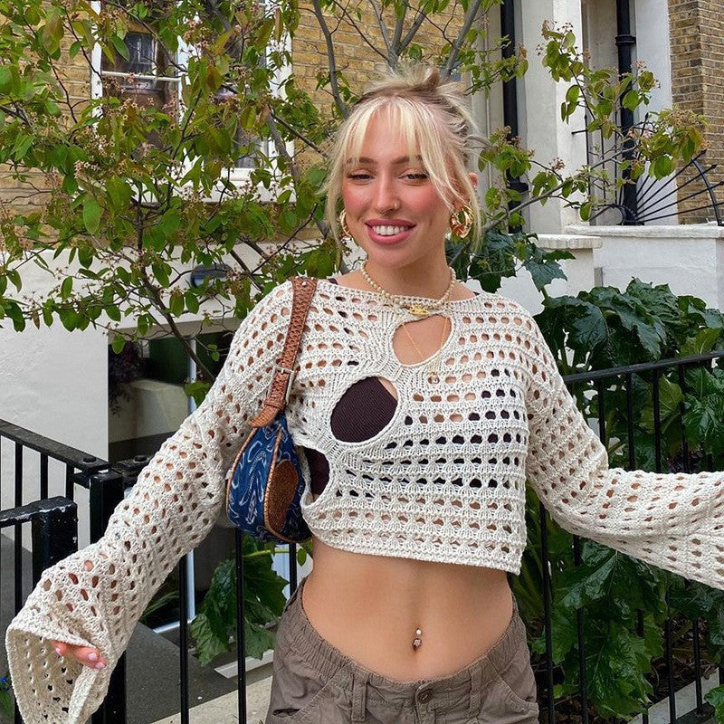 Summer New Spice Girl Style Fashion Sexy Irregular Hollowed Out Knitted Smock