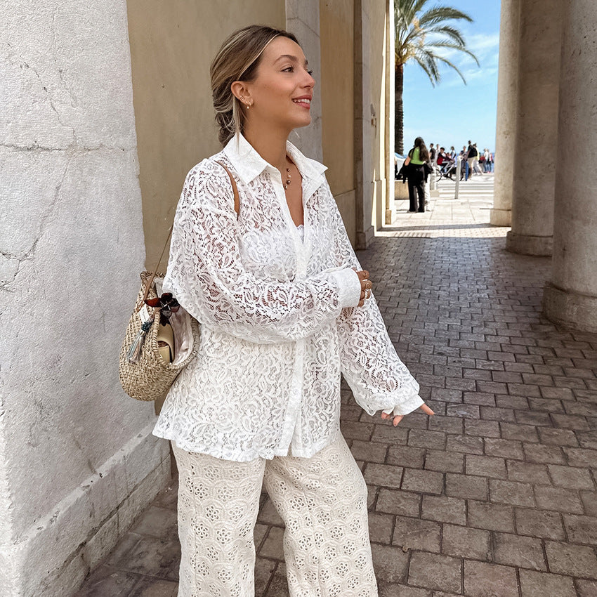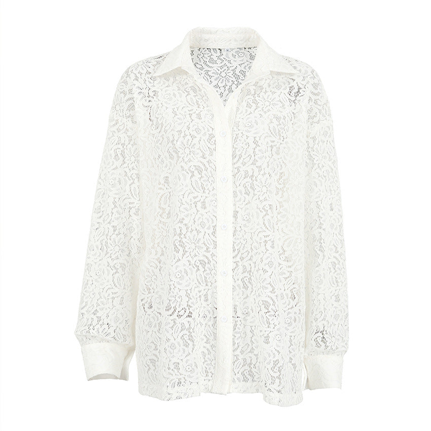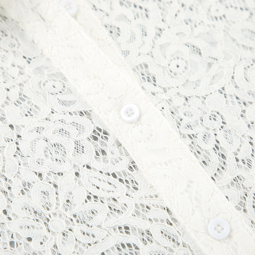 Summer Women's New Temperament White Lace Long-Sleeved Shirt Women Loose Hollow-Out Senior Feeling Shirt