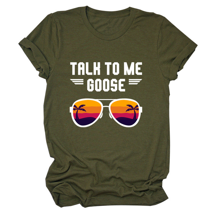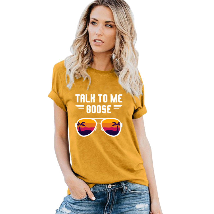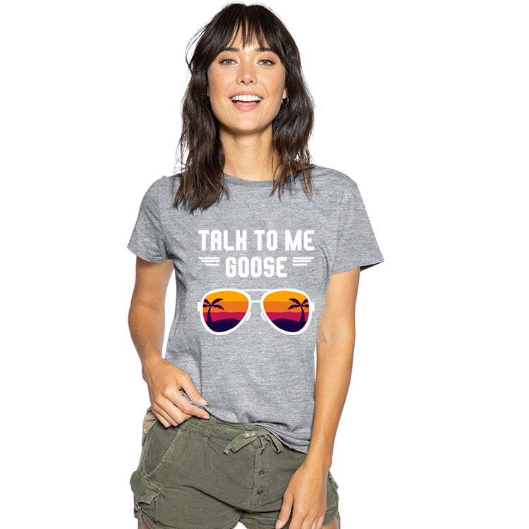 Talk To Me Goose Casual Loose Short-Sleeved Fashion T-Shirt For Women