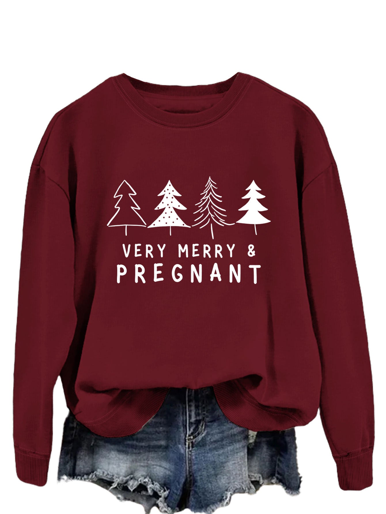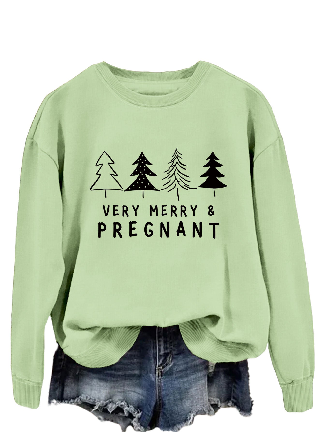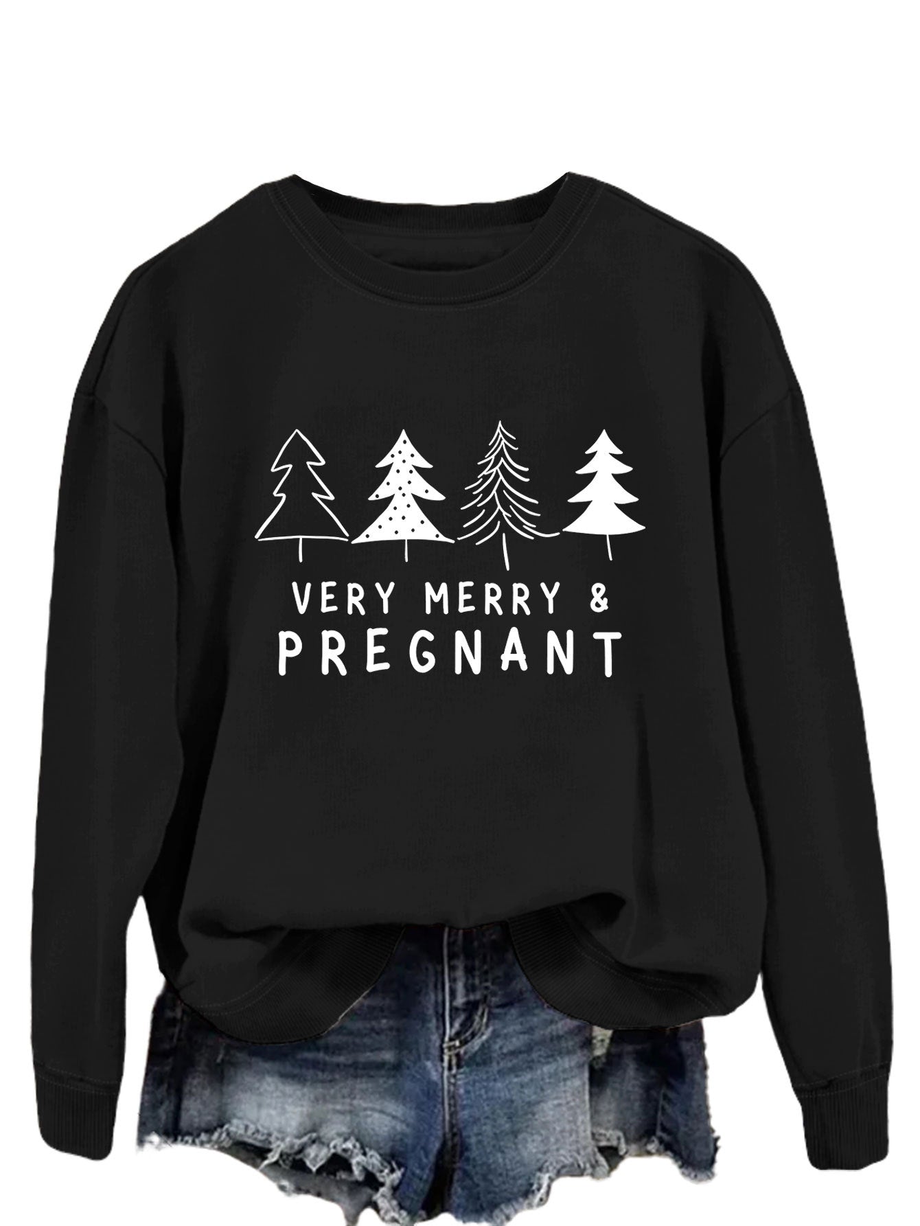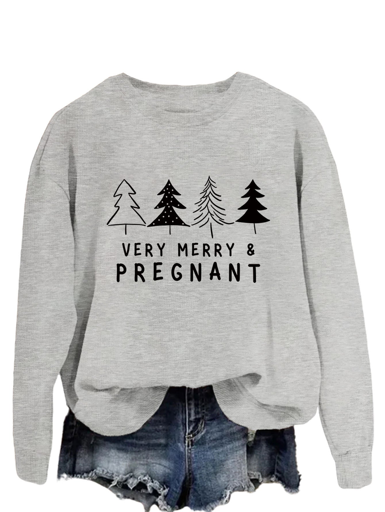 Very Merry Pregnant Long Sleeve Hoodie Fashion Long Sleeve Top Woman