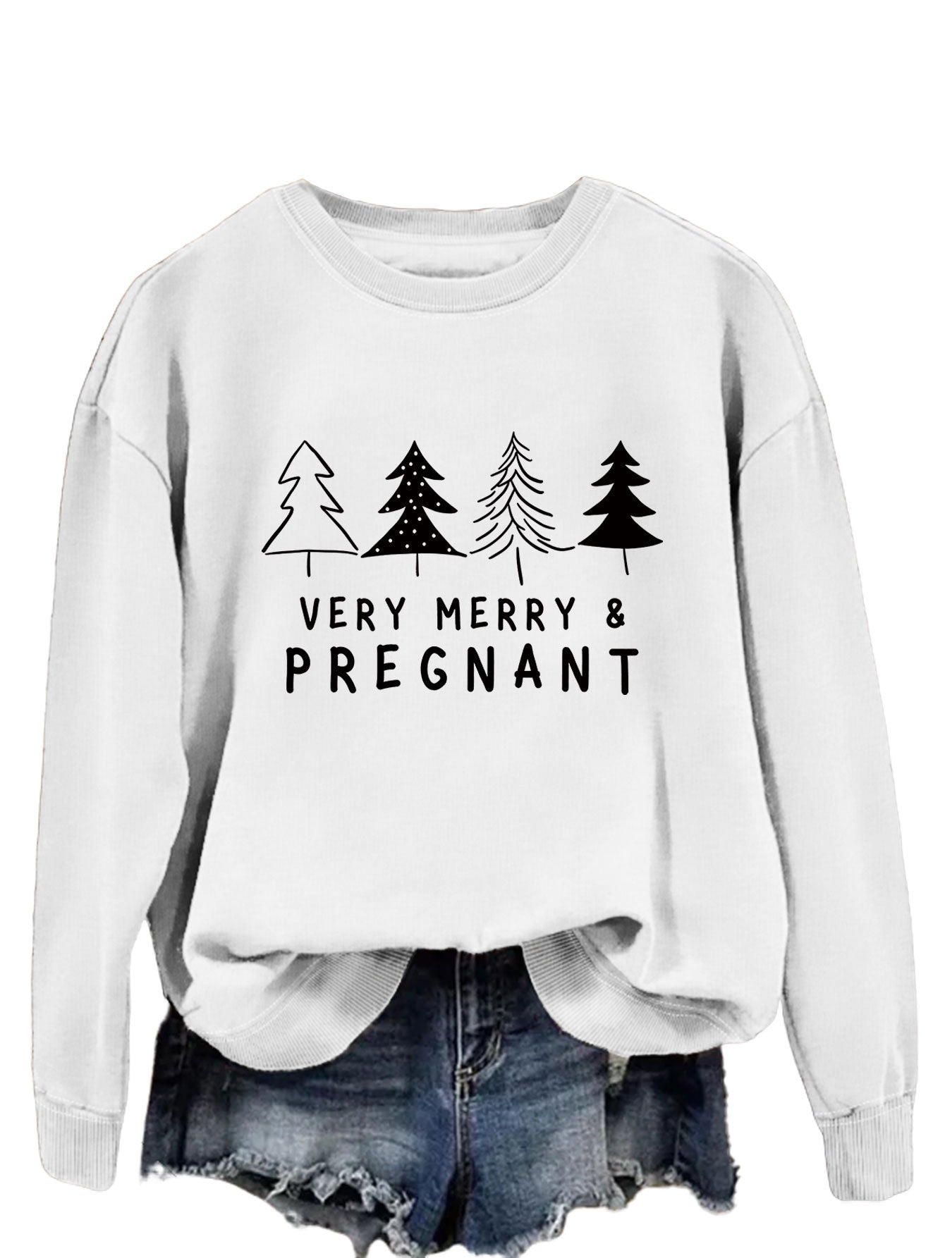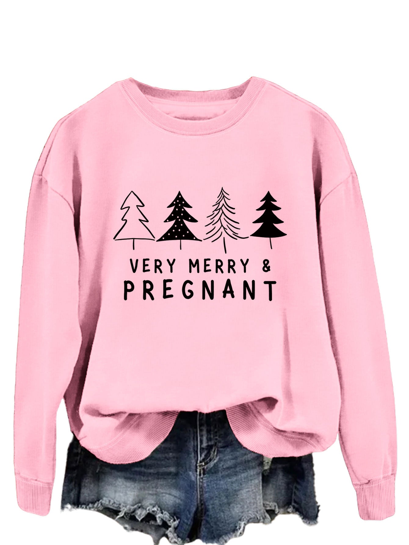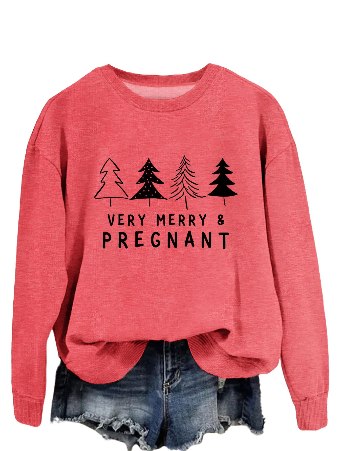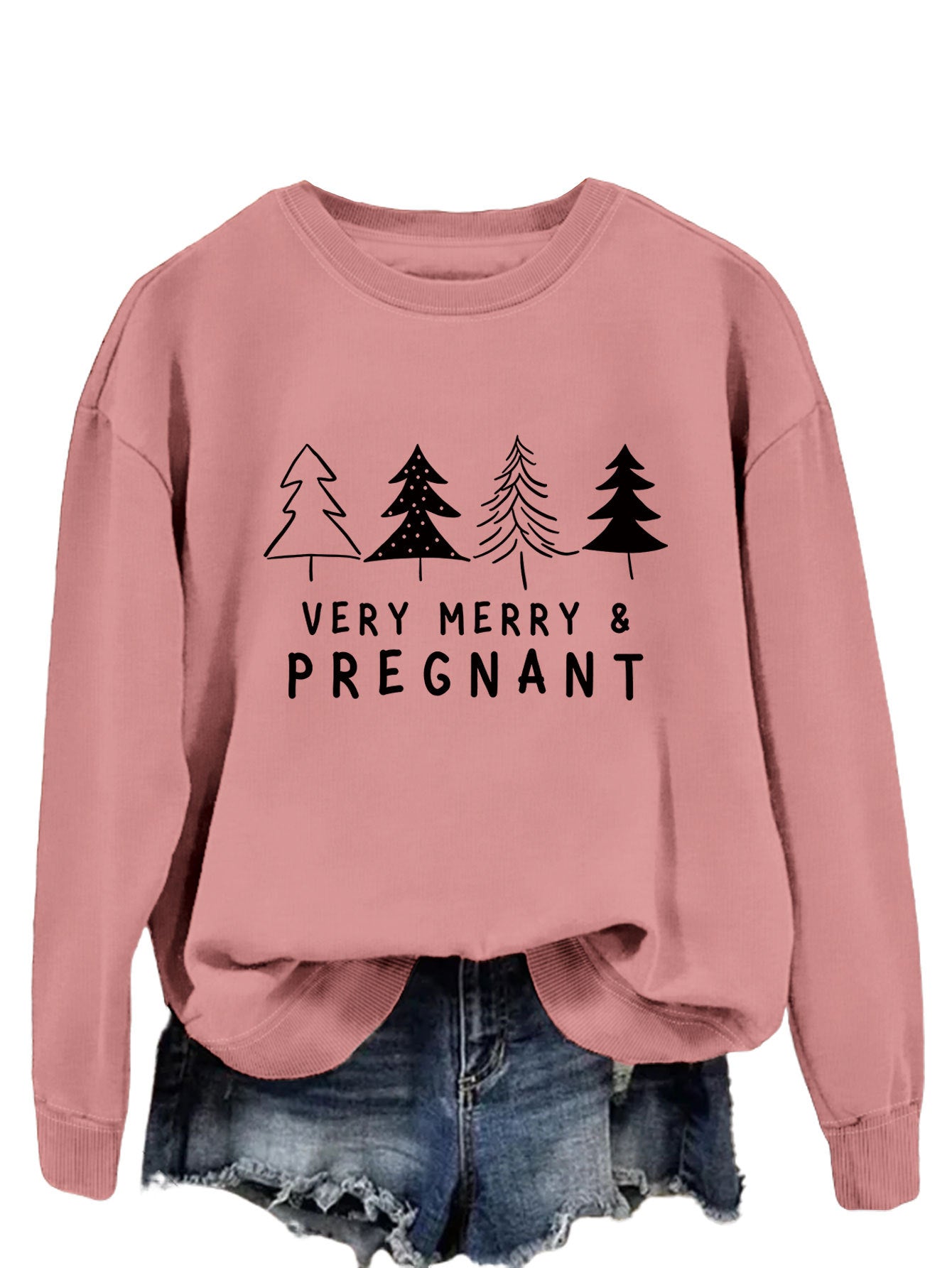 Very Merry Pregnant Long Sleeve Hoodie Fashion Long Sleeve Top Woman