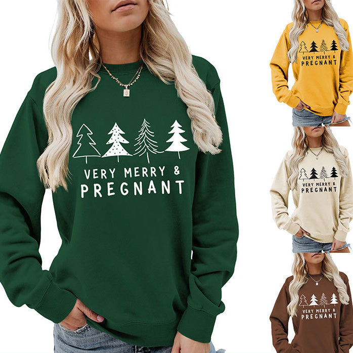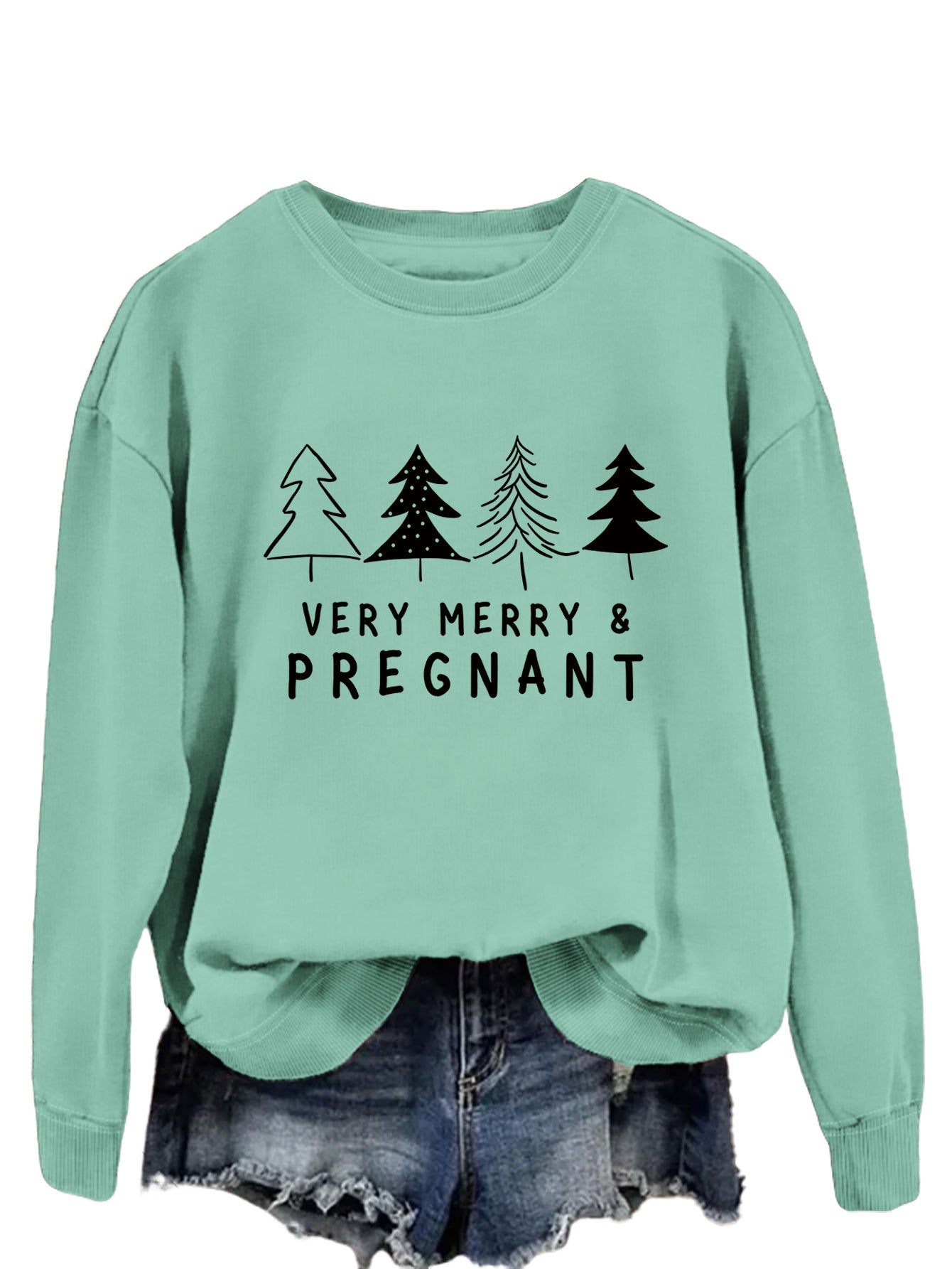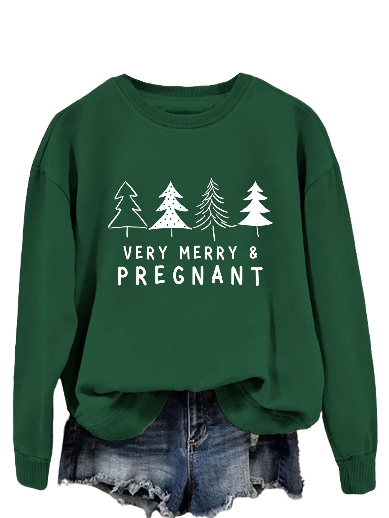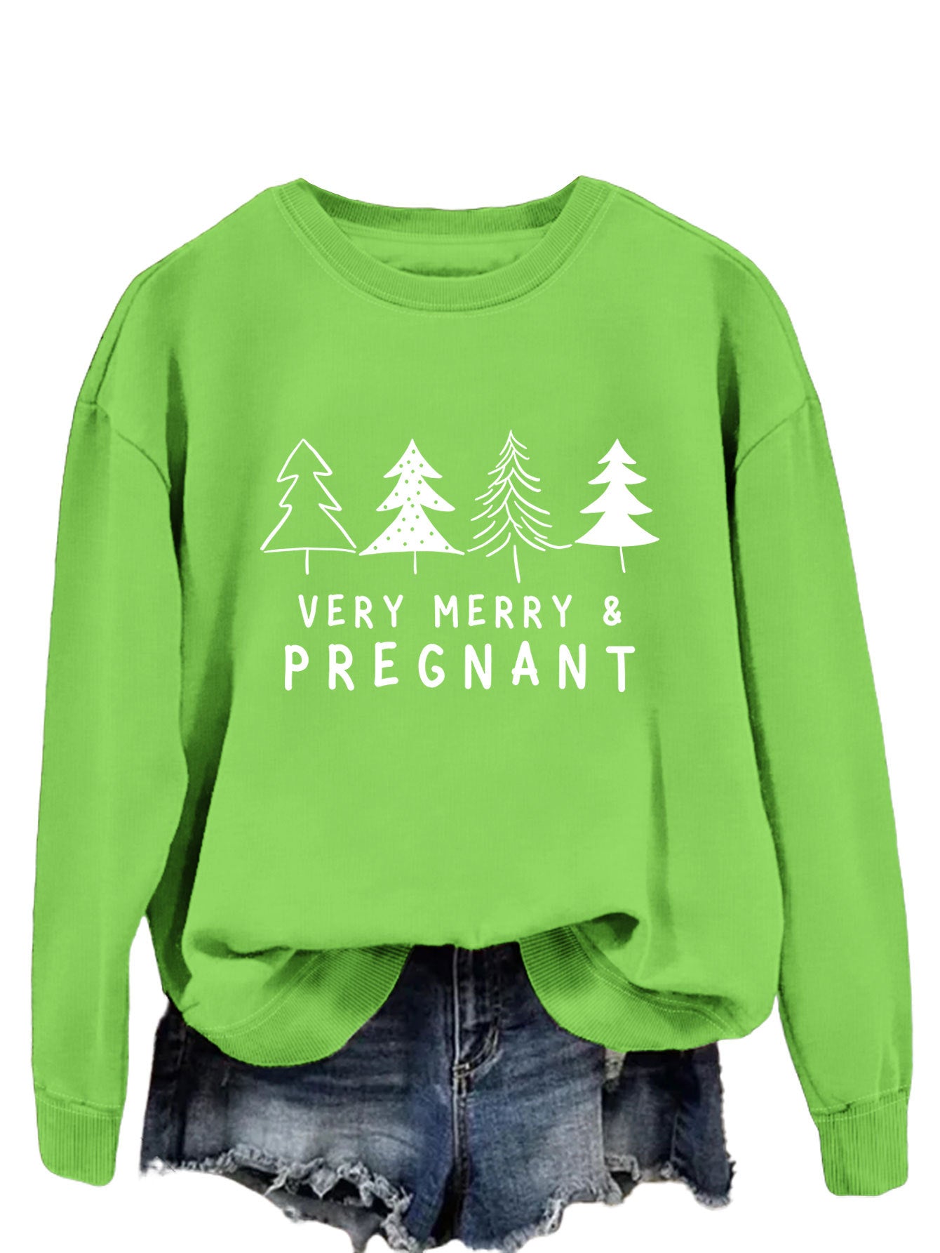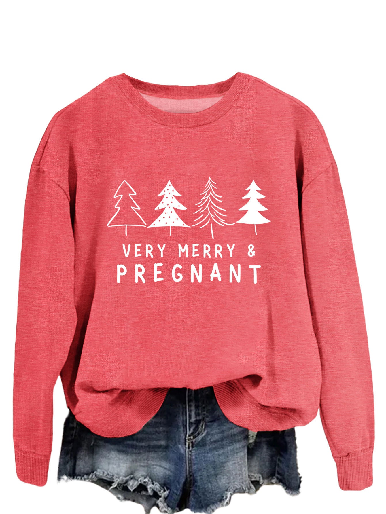 Very Merry Pregnant Long Sleeve Hoodie Fashion Long Sleeve Top Woman