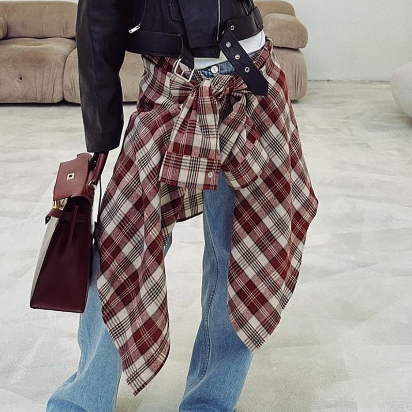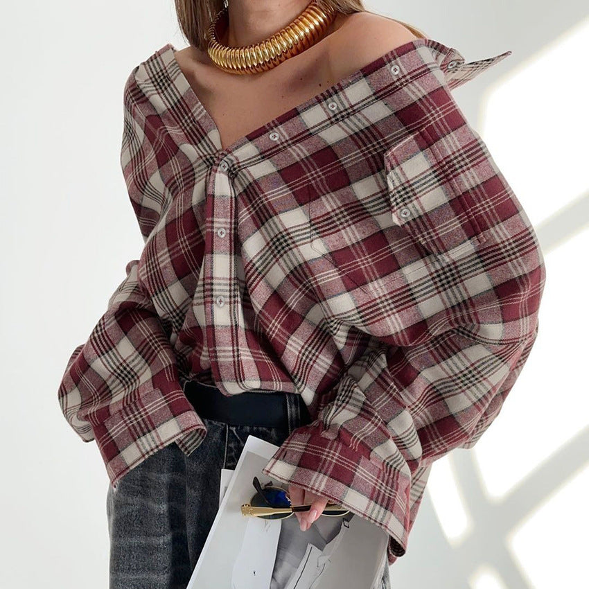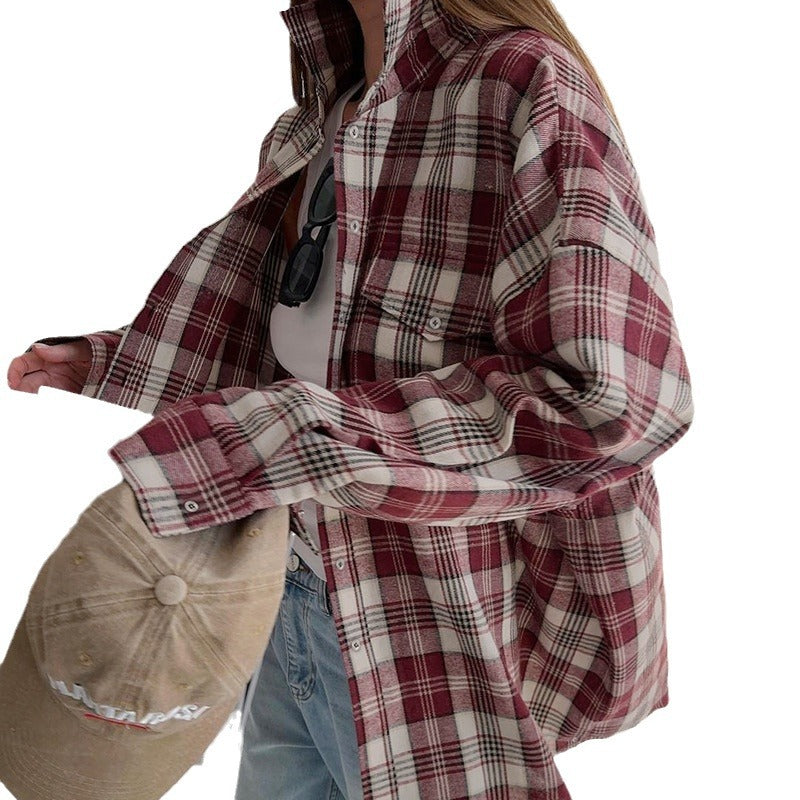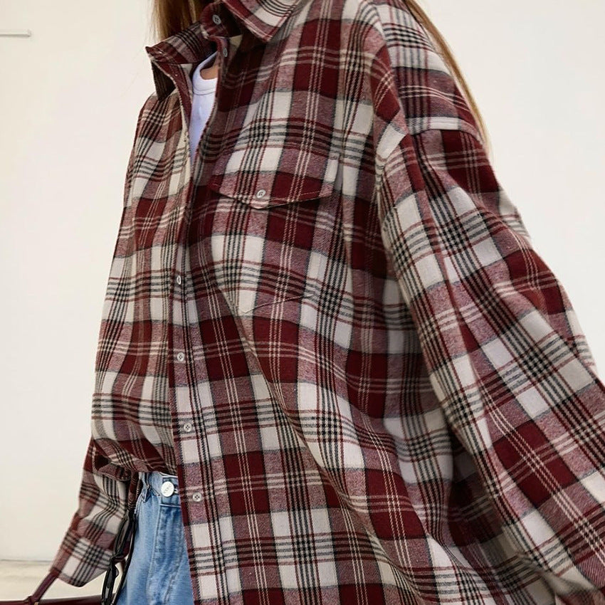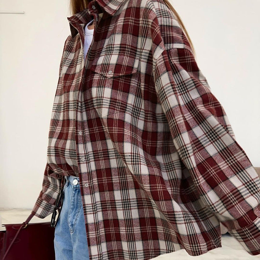 Vintage Classic Autumn/Winter New Women's Plaid Terylene Lapel Long-Sleeved Shirt Casual Loose Commuter Shirt