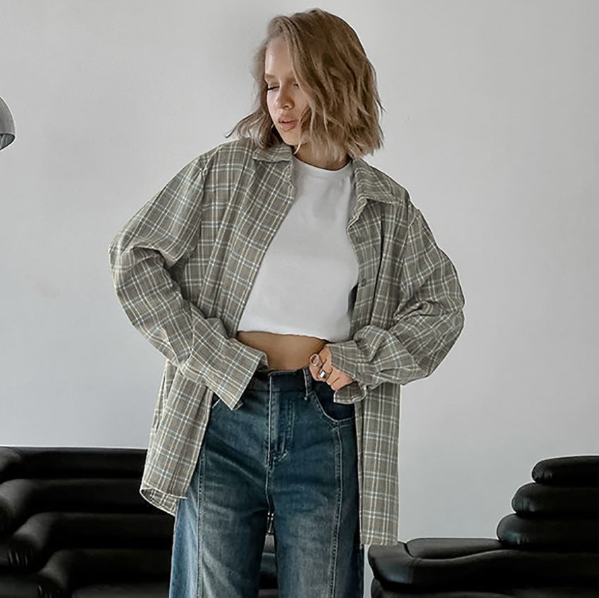 Vintage Classic Plaid Plaid Shirt New Fall Fashion Women's Top