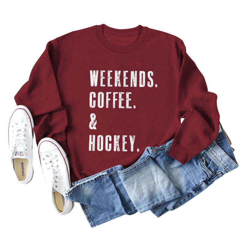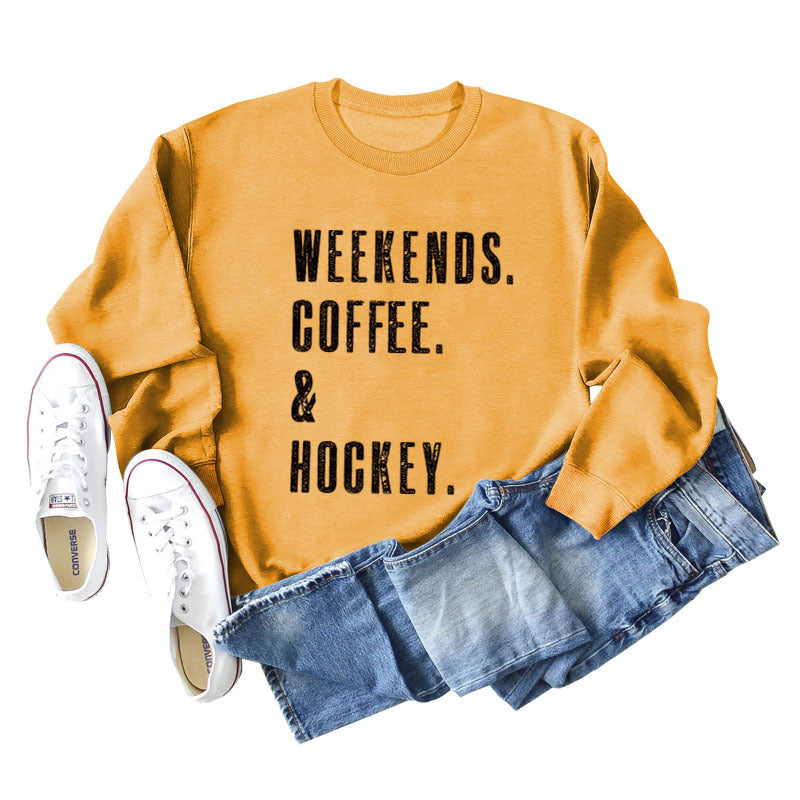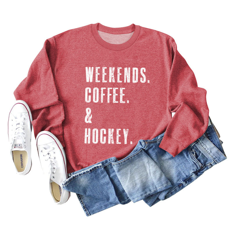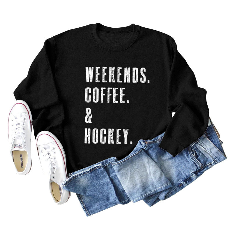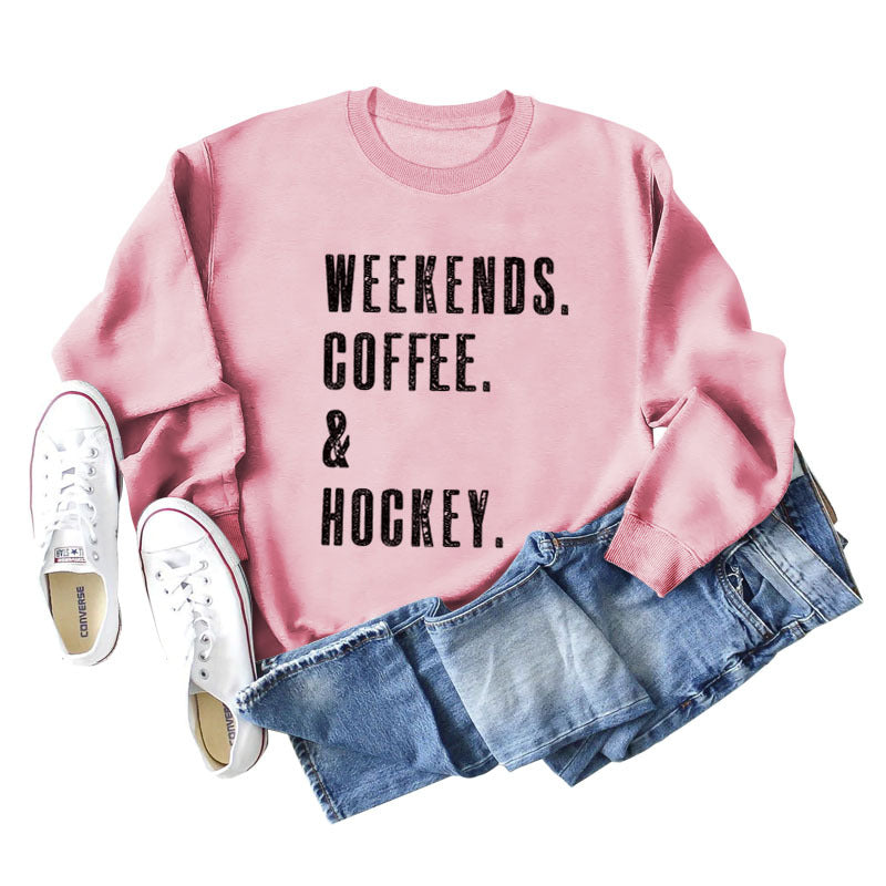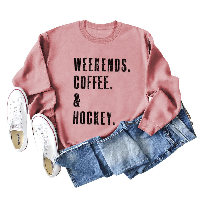 Weekends Coffee Letter Round Neck Loose Fall And Winter Long Sleeved Hoodie Woman
