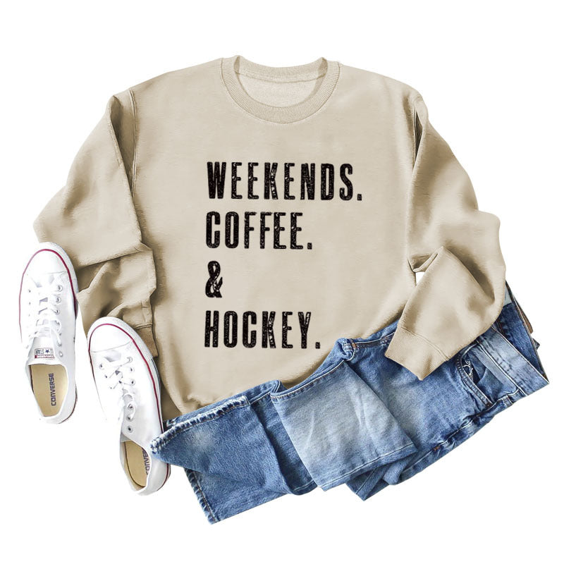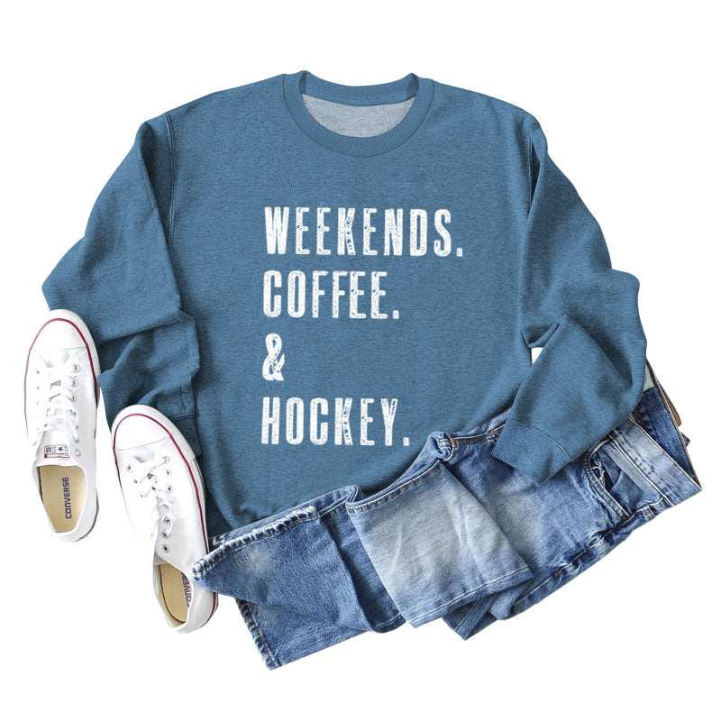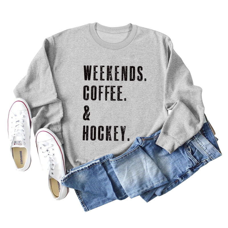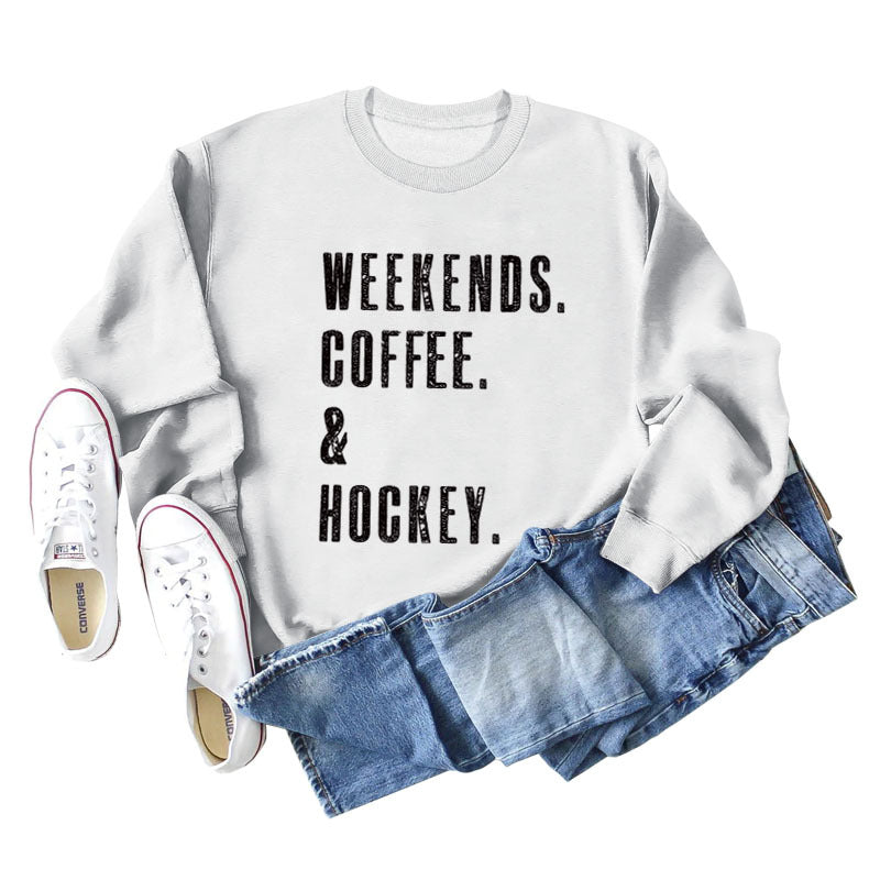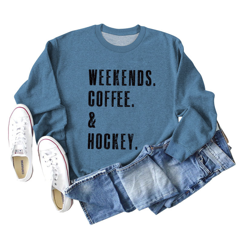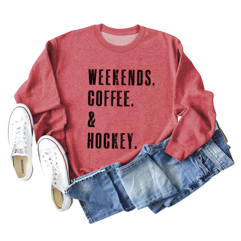 Weekends Coffee Letter Round Neck Loose Fall And Winter Long Sleeved Hoodie Woman