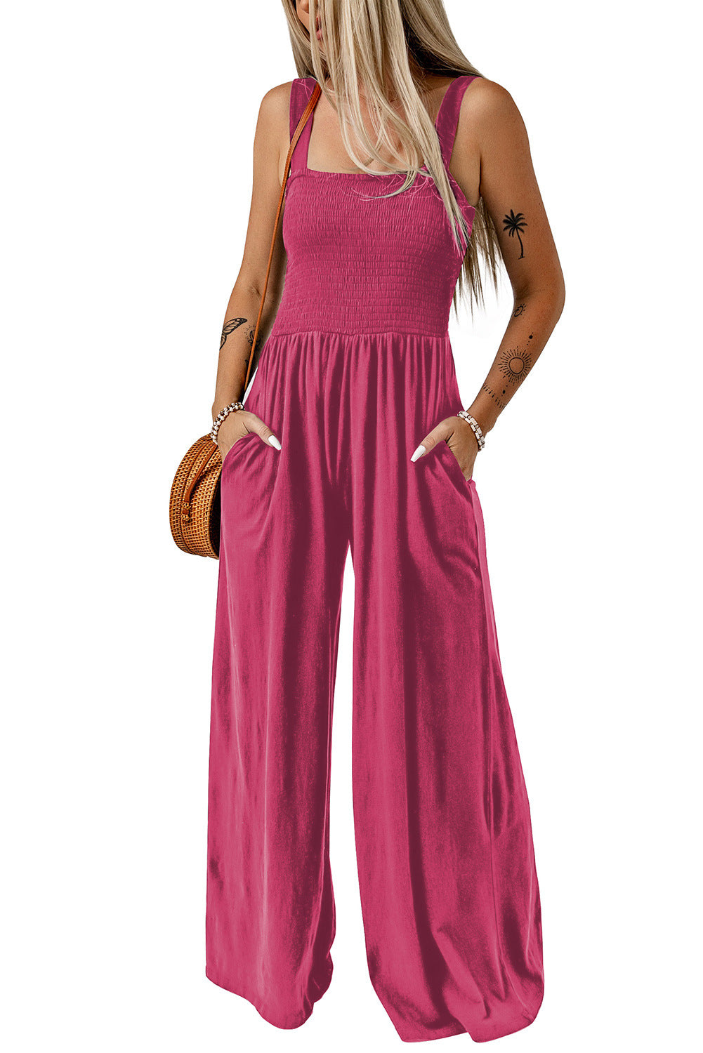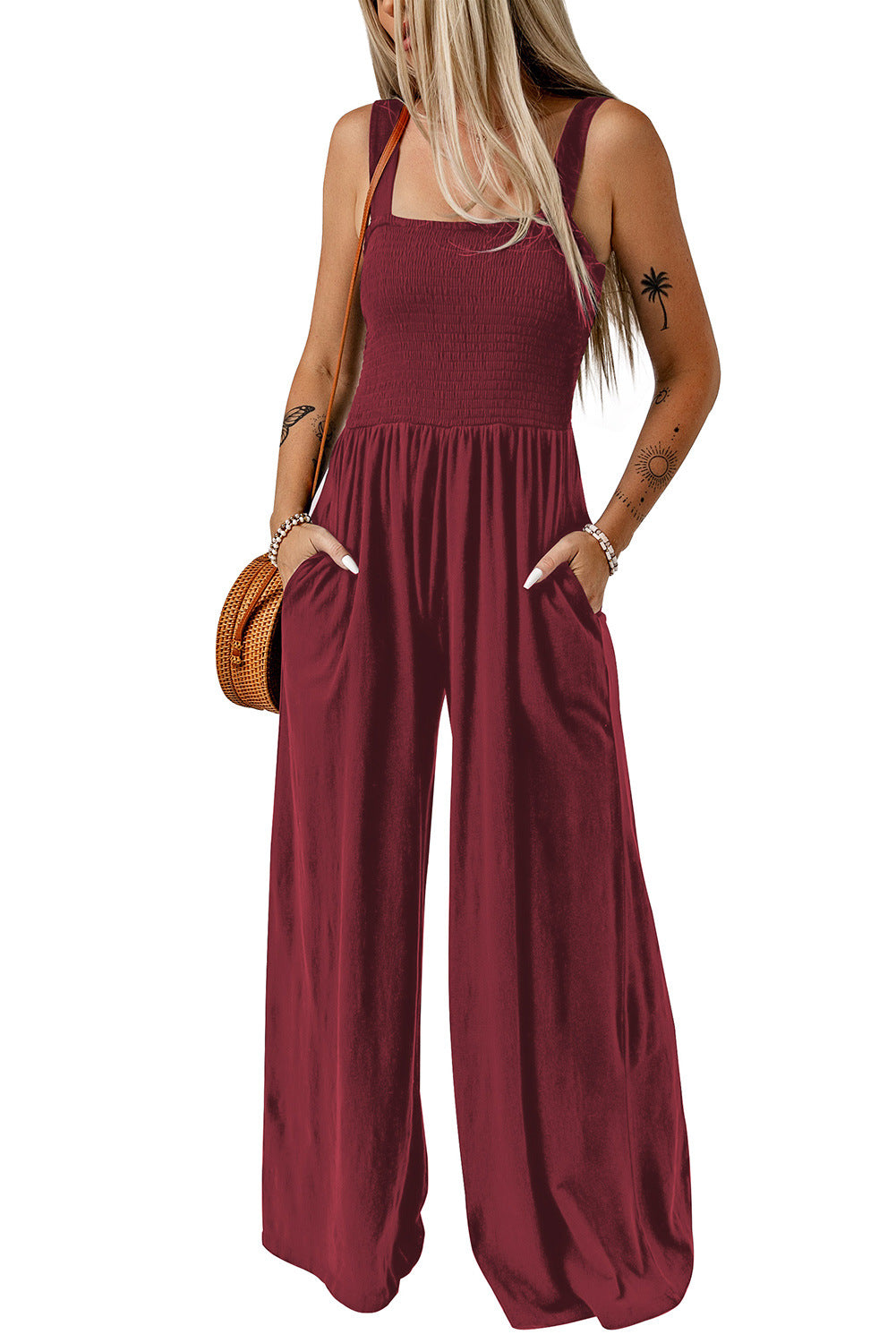 Simple High Waist Knitted Off-The-Shoulder Broadfoot Pants Women Play With Pure Black One-Piece Pants Women