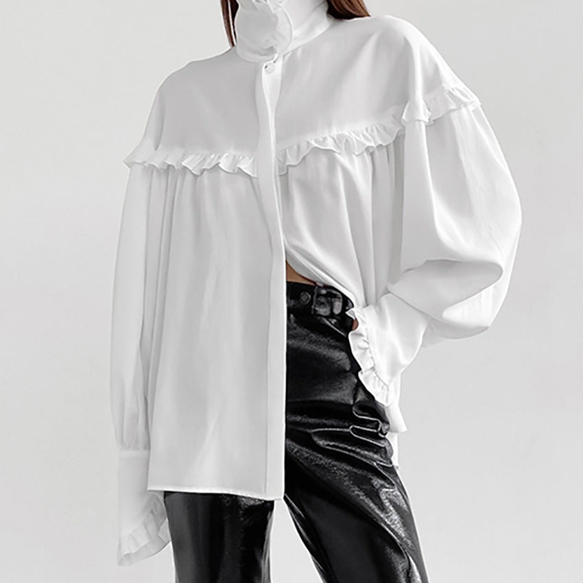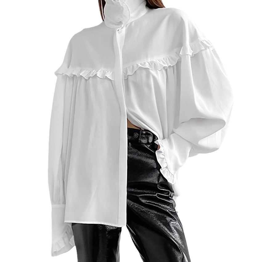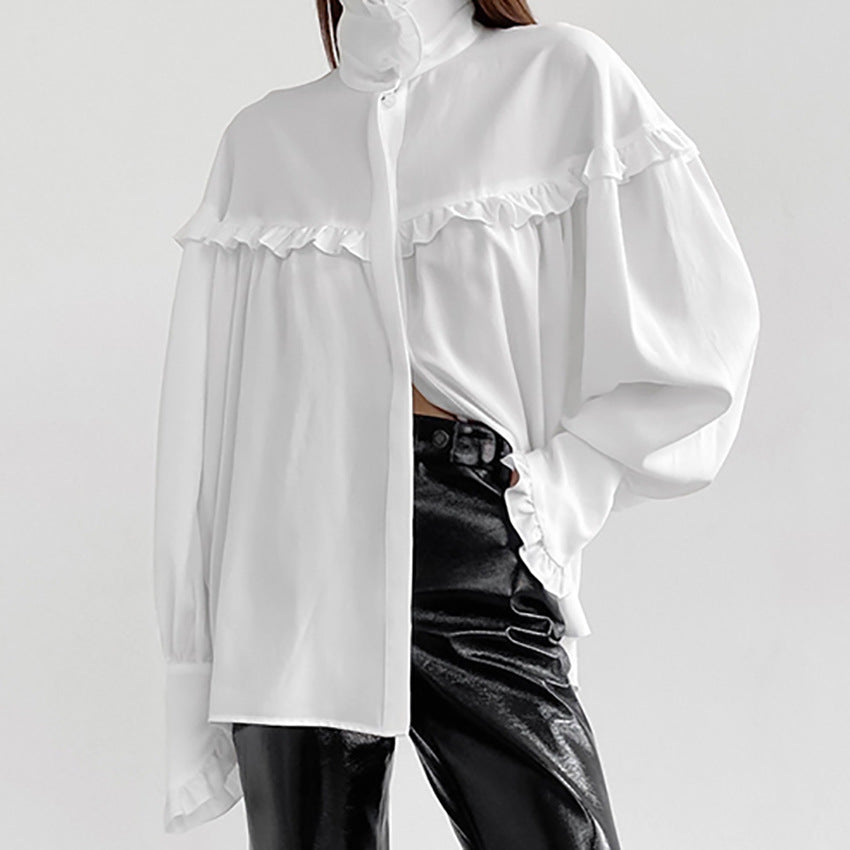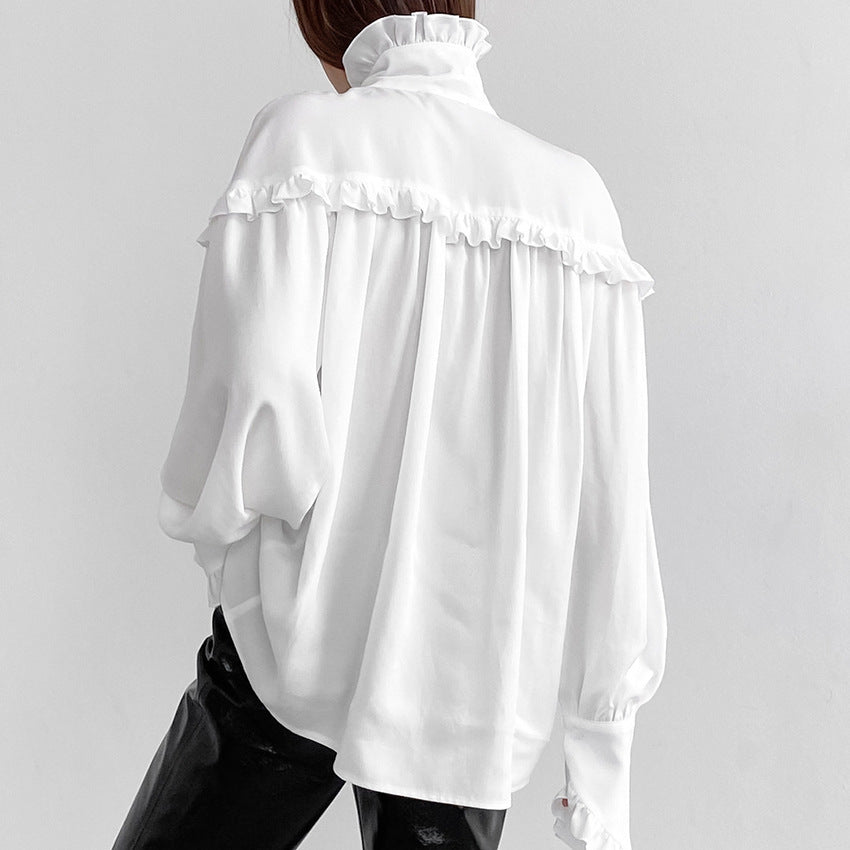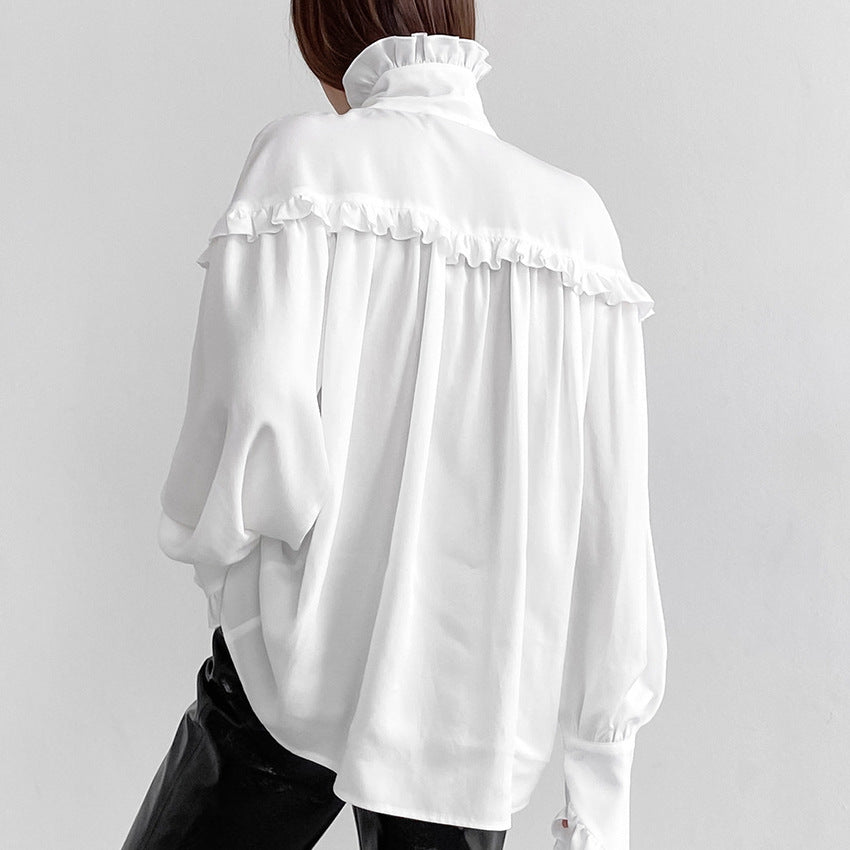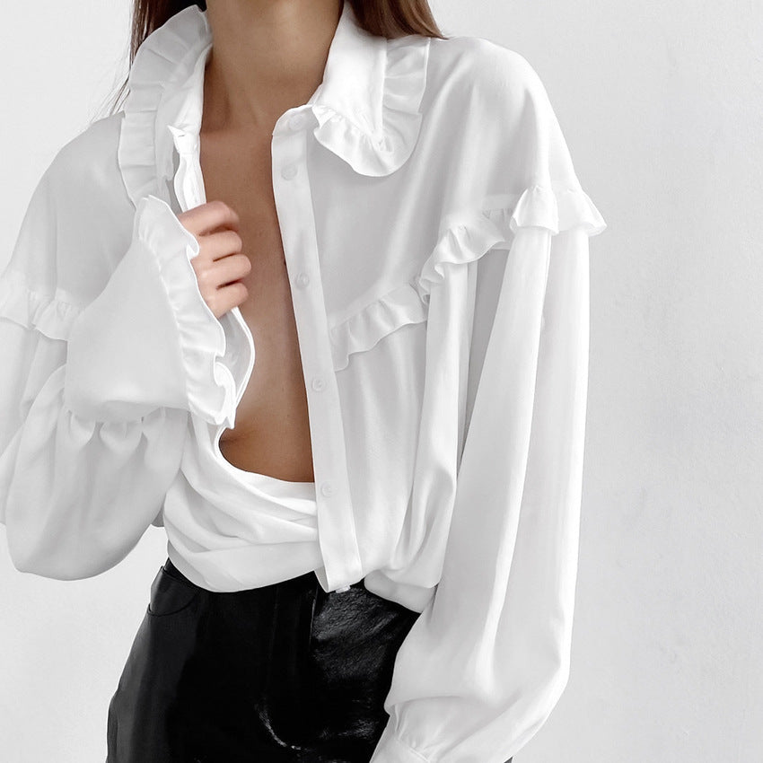 White Lapel Design Lace Chiffon Loose Temperament Shirt New Autumn Fashion Women