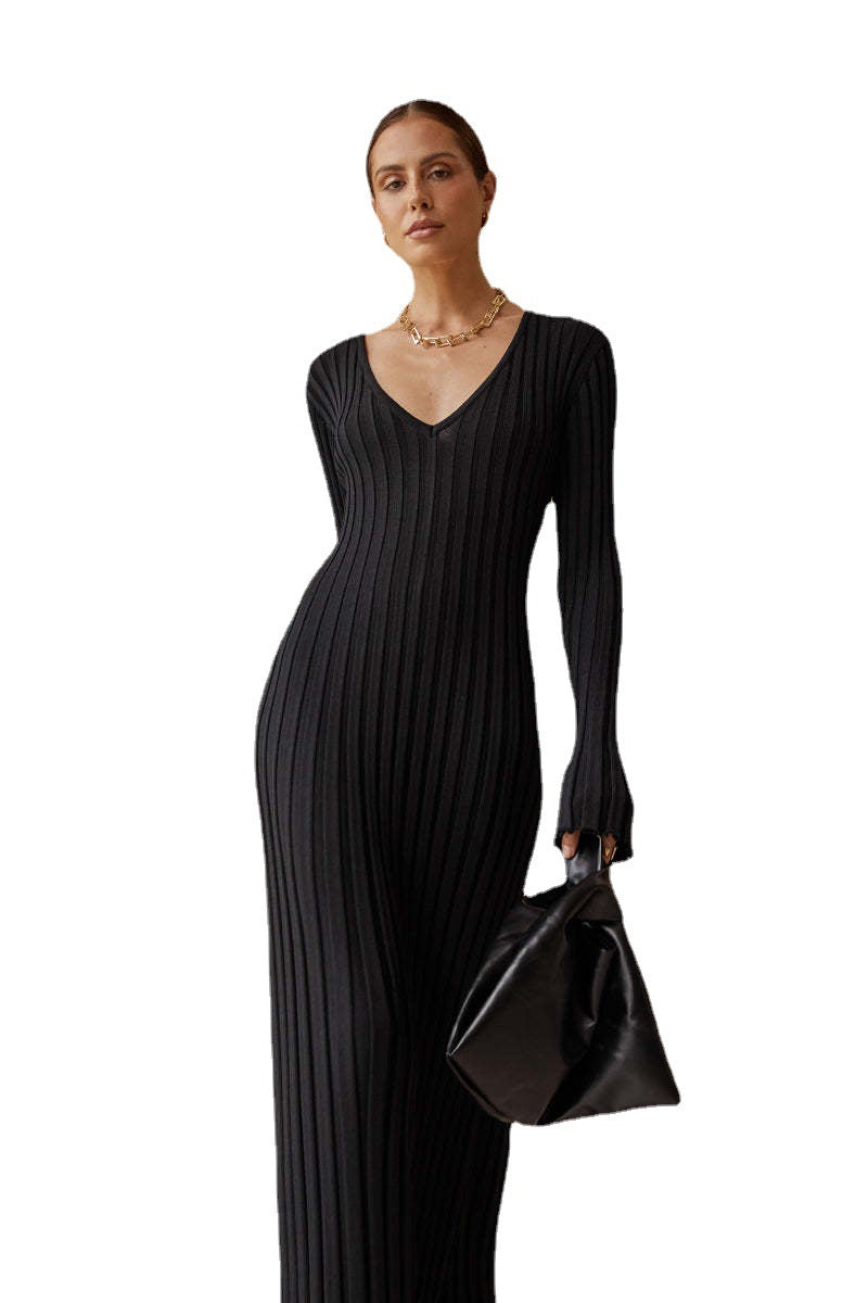 Women Autumn And Winter New Solid Color Fashion Casual Dress Knitted Rabbit Fluff Clothes