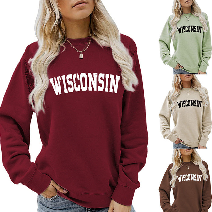 Women's Autumn And Winter Clothing Wisconsin Letter Print Casual Loose Round Neck Hoodie