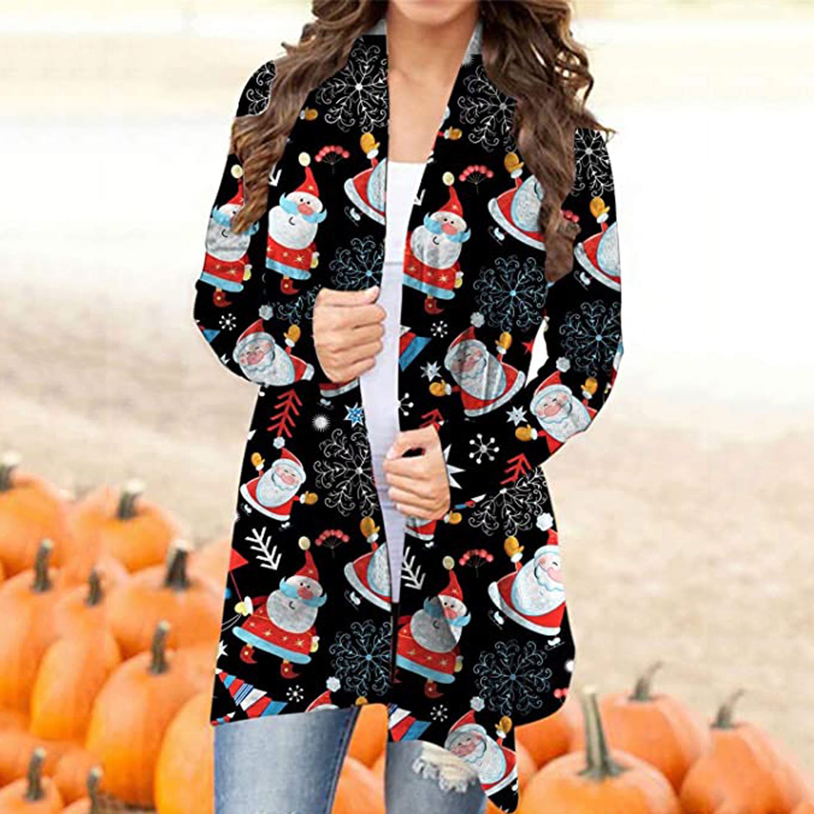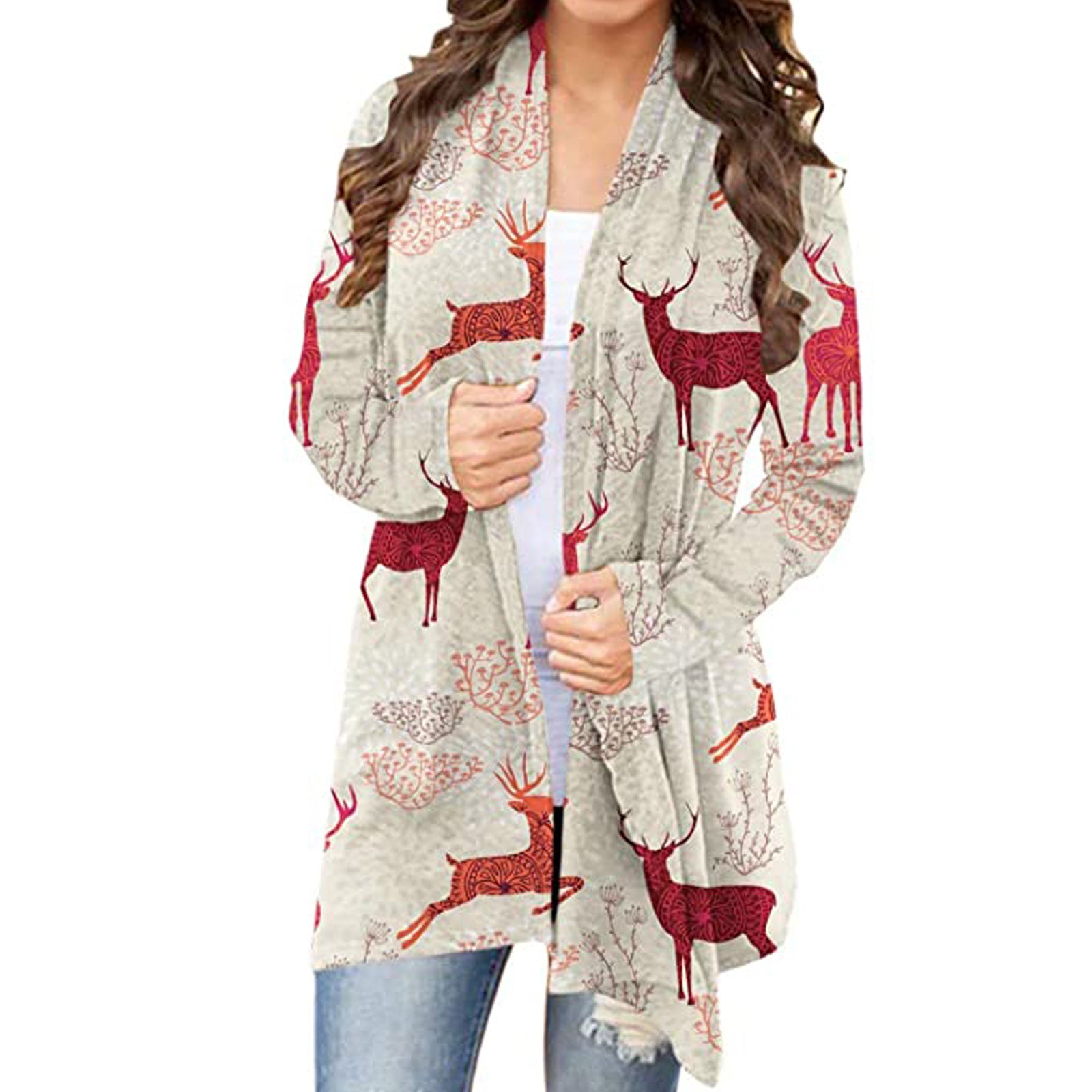 Women's Christmas Printed Long-Sleeved Sweater Cardigan Top Coat