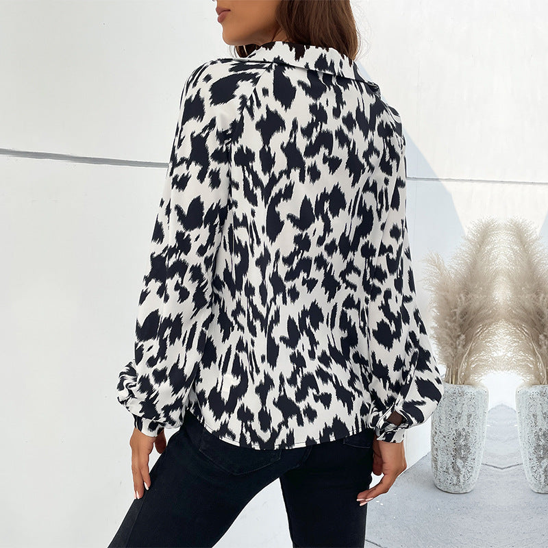 Women's New Lapel Long-Sleeved Leopard Print Shirt Women