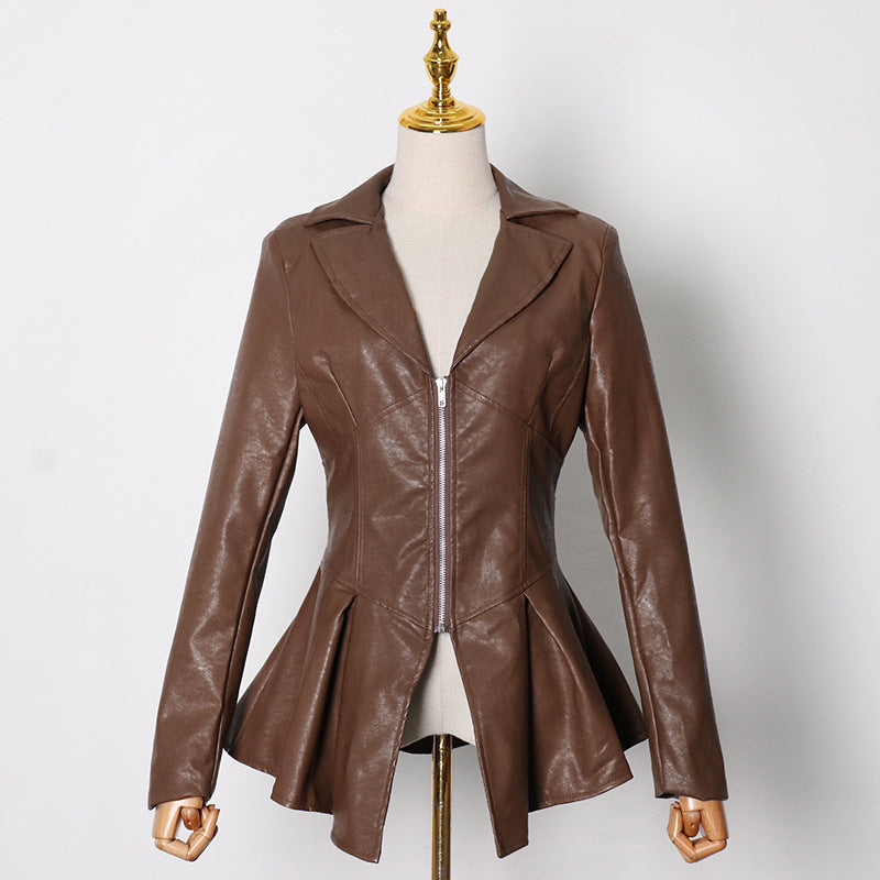 Women's New Leather Lapel Waist Slimming Splicing Bottom Spring And Autumn Coat Women's Fashion Casual Jacket